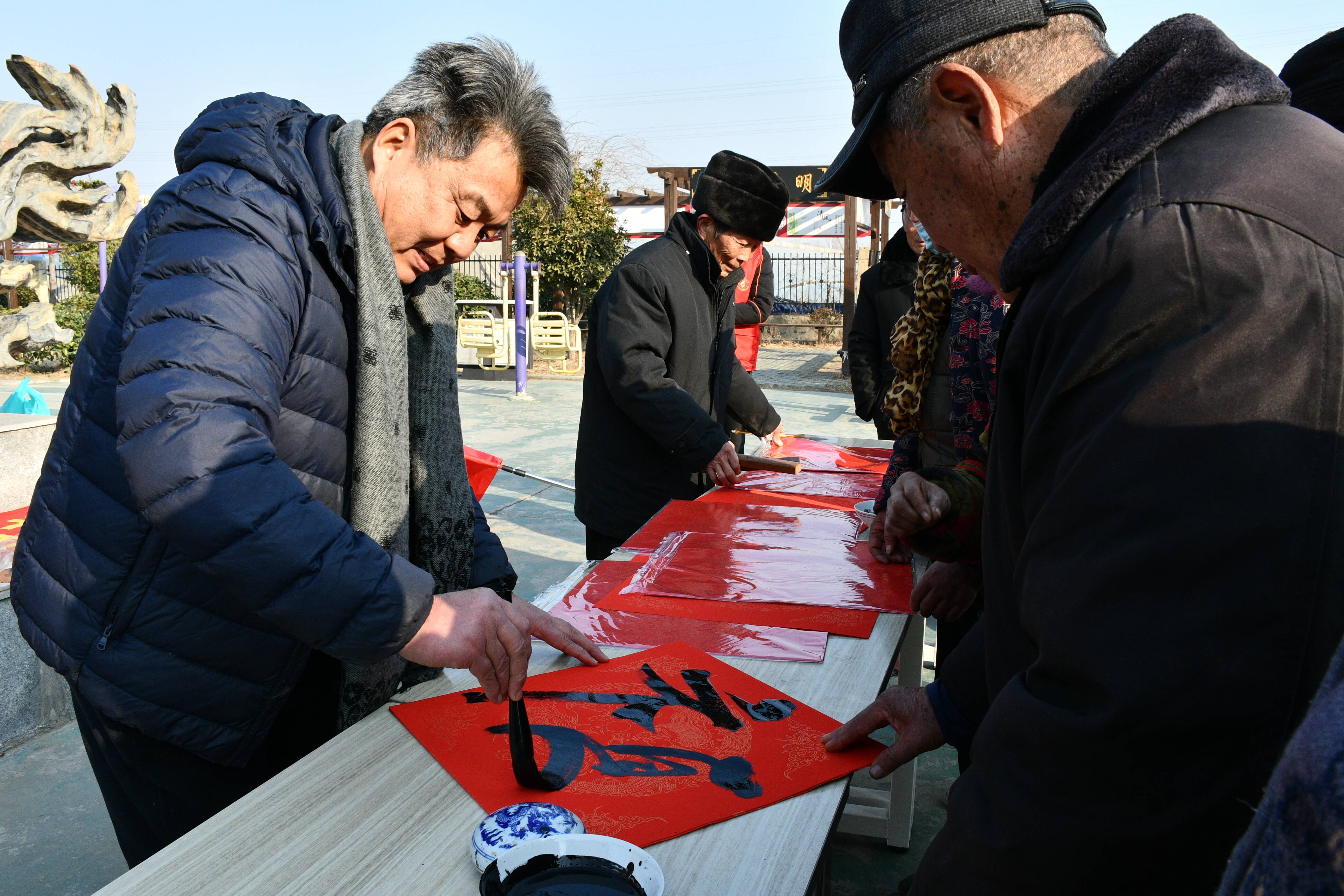 为迎接2024年新年的到来,元旦前夕,铜山区茅村镇龙庄村邀请中国书法家协会会员翁达十(原名王治贤),以及镇书法协会会员们在龙庄村文化广场为村民写福字送祝福。