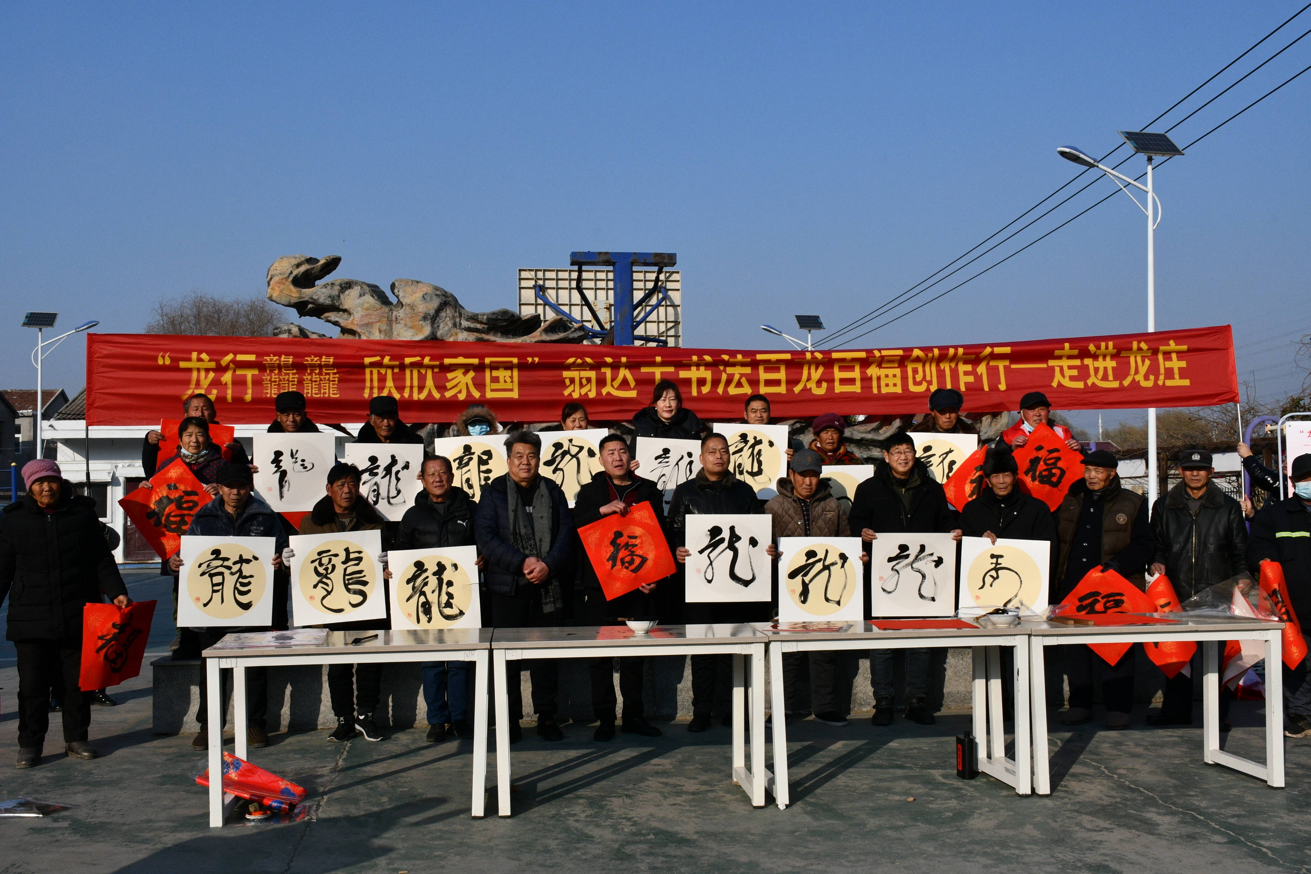 翁达十告诉笔者,龙年即将来临,他决定走进一百个带有“龙”字名称的地方,书写“福”“龙”免费送给群众,龙庄村是第一站。翁达十说:“快过春节了,能为广大城乡群众免费写福送祝福,将健康喜庆、祥和向上的文化氛围和节日祝福送到农民朋友身边,做点利民之事,感到很高兴。 ”