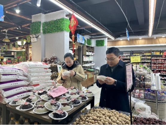 检查组对超市春节期间蔬菜、肉类储备做了调查,对预制菜的保存期和合格证等重点检查,同时检查了超市自制食品的加工环节和储存环节,重点检查是否存在销售过期、三无食品行为,从业人员是否有健康证。
