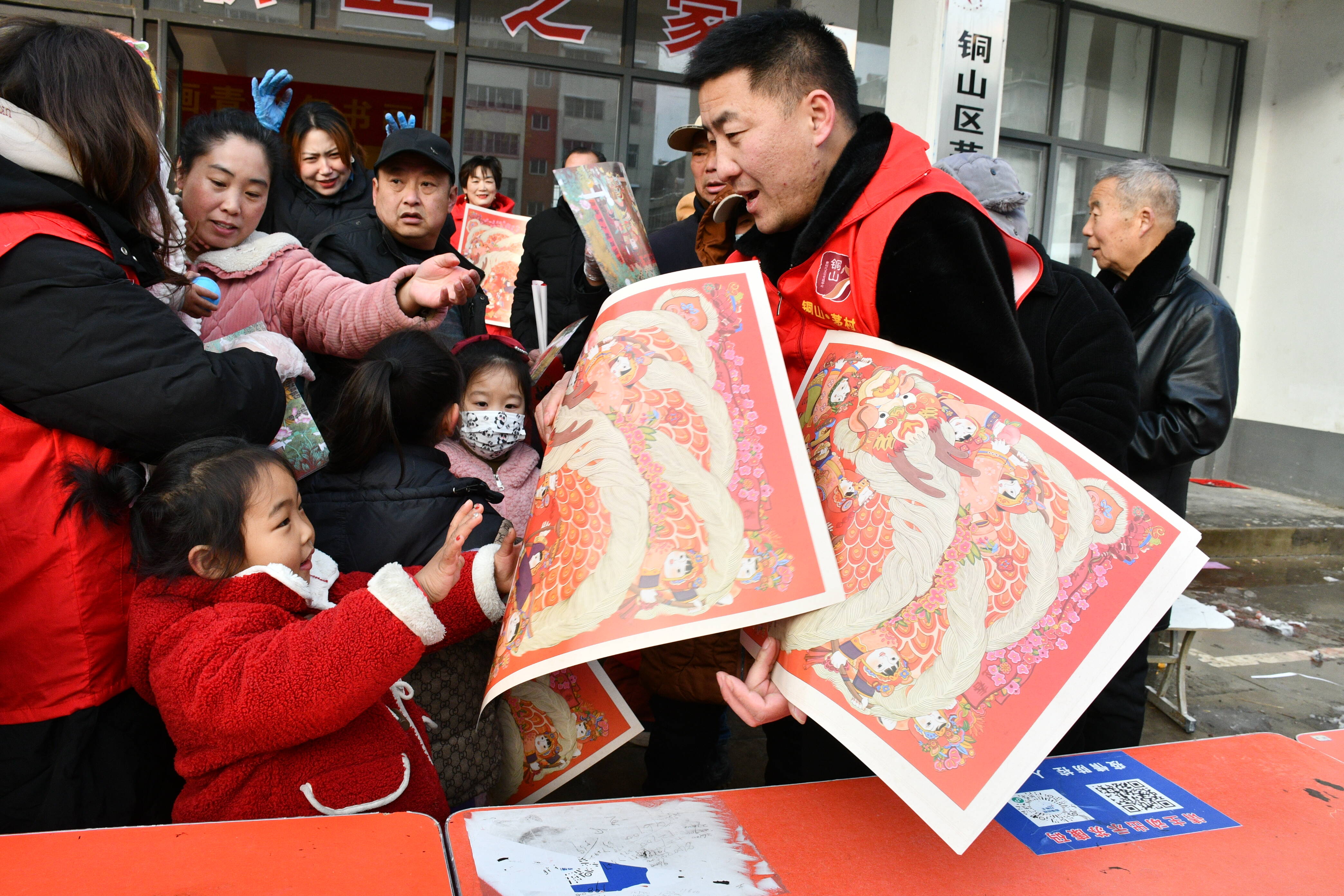 赏年画、贴年画是中国人传统的过年习俗。茅村镇文明实践站的志愿者们把一张张充满寓意的年画,送到村民手中,大家边领边欣赏。