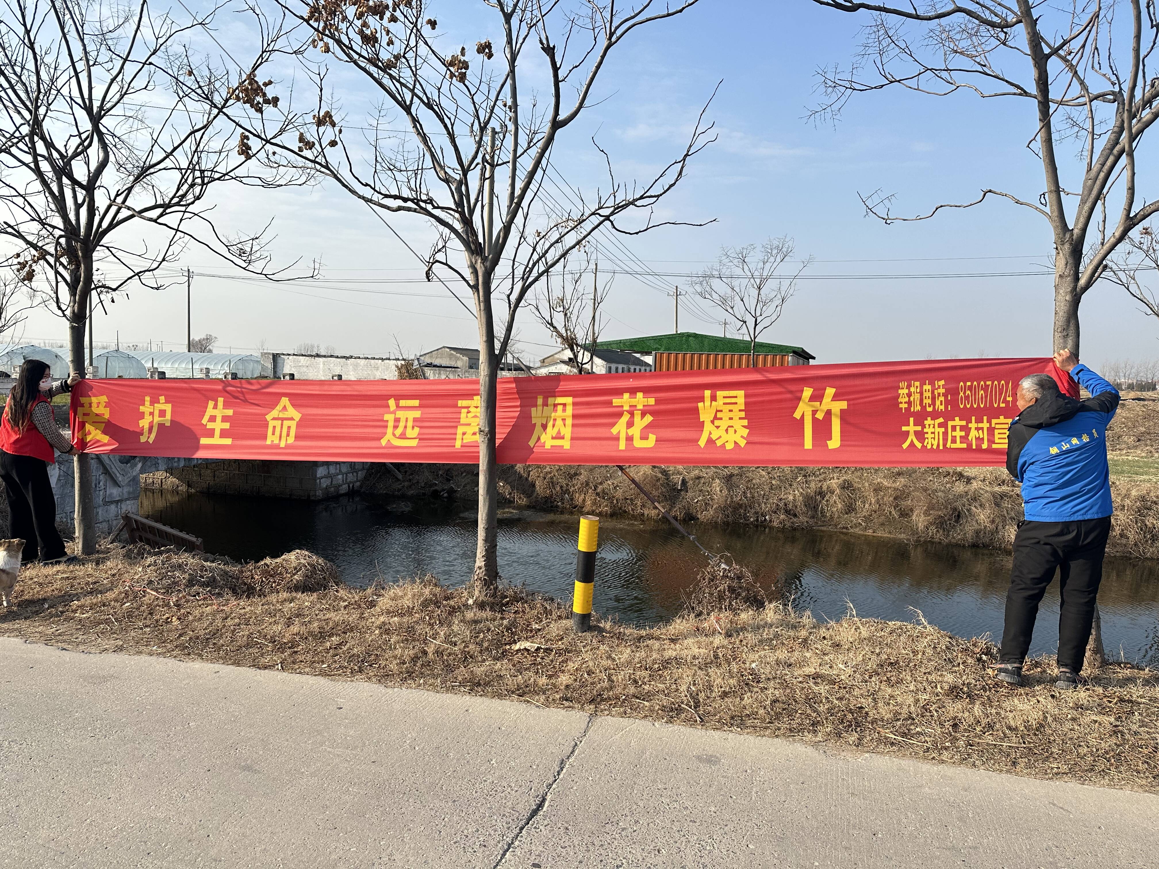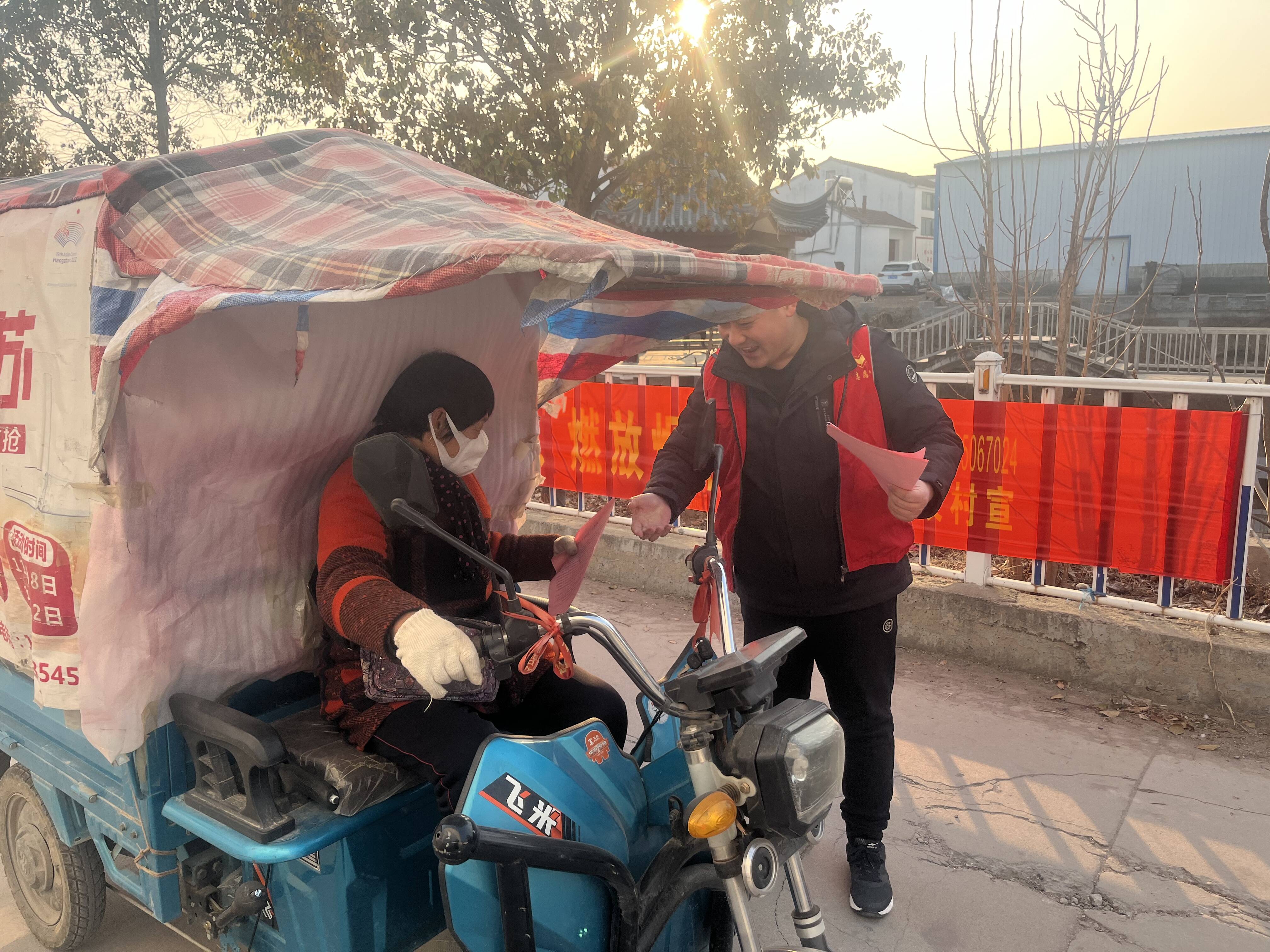 九段村的志愿者及网格员们通过在辖区沿街路口悬挂横幅、向过往村民发放告知书等多种形式营造宣传氛围。向群众宣传烟花爆竹的相关法规和禁止行为,倡导环保理念,让更多的群众意识到燃放烟花爆竹的危害,增强辖区内群众安全防患意识和环保意识。