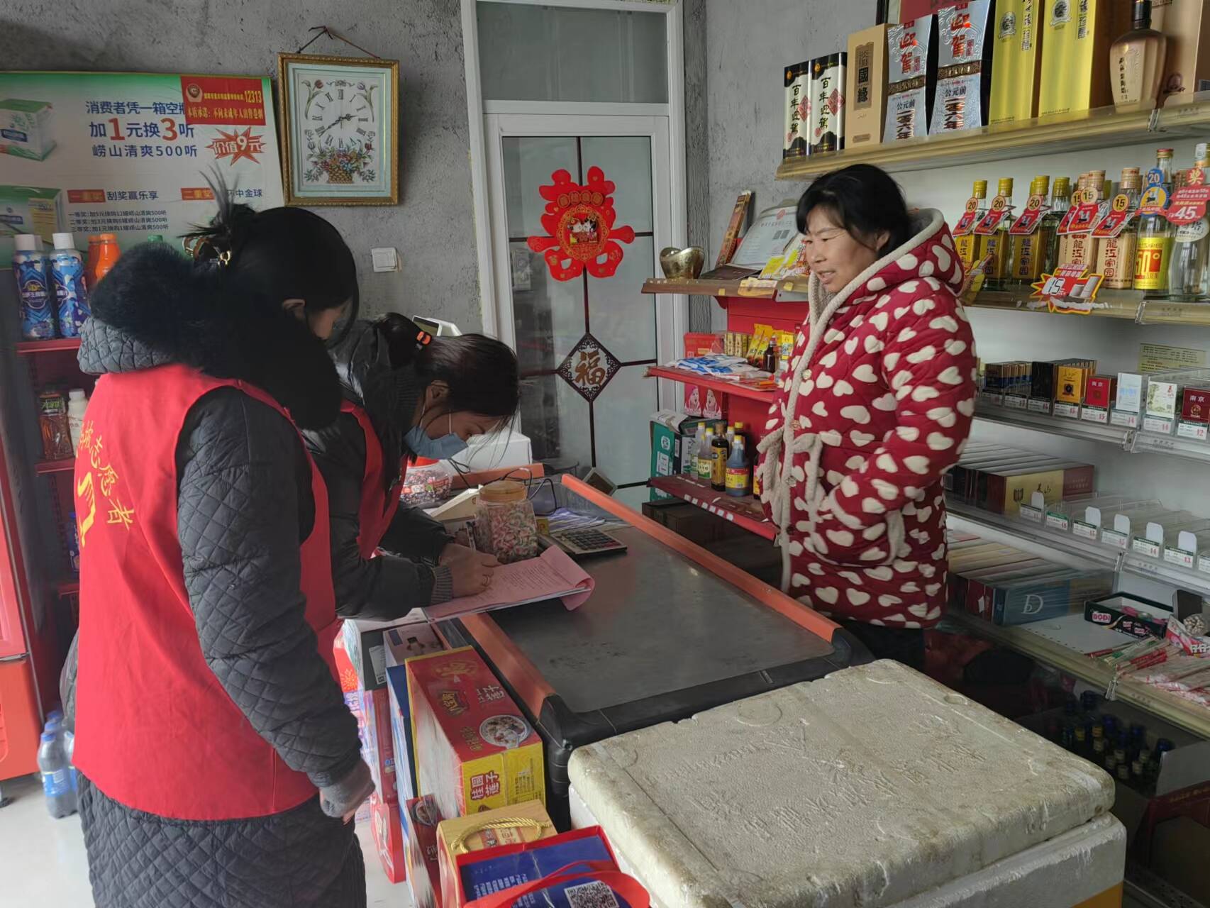 马坡村的志愿者们深入辖区内沿街商铺、超市等重点经营场所,结合春节期间村民们的消费特点,以肉蛋制品、水产品、果蔬、酒类、食用油、散装食品等为重点,排查食品保质期情况、劣质食品以及是否销售三无食品进行安全检查,全力确保广大村民们的食品安全。同时开展电气焊行业场所安全专项检查,重点对辖区内涉及电气焊的商铺、机动车配件修理点的安全生产制度、电气焊作业人员是否持证上岗、室内电气线路是否有老化破损、布线是否规范牢靠、消防疏散通道是否畅通等情况进行检查。针对检查发现的问题,志愿者指导个体工商户整改到位,切实从源头上预防和减少安全风险。