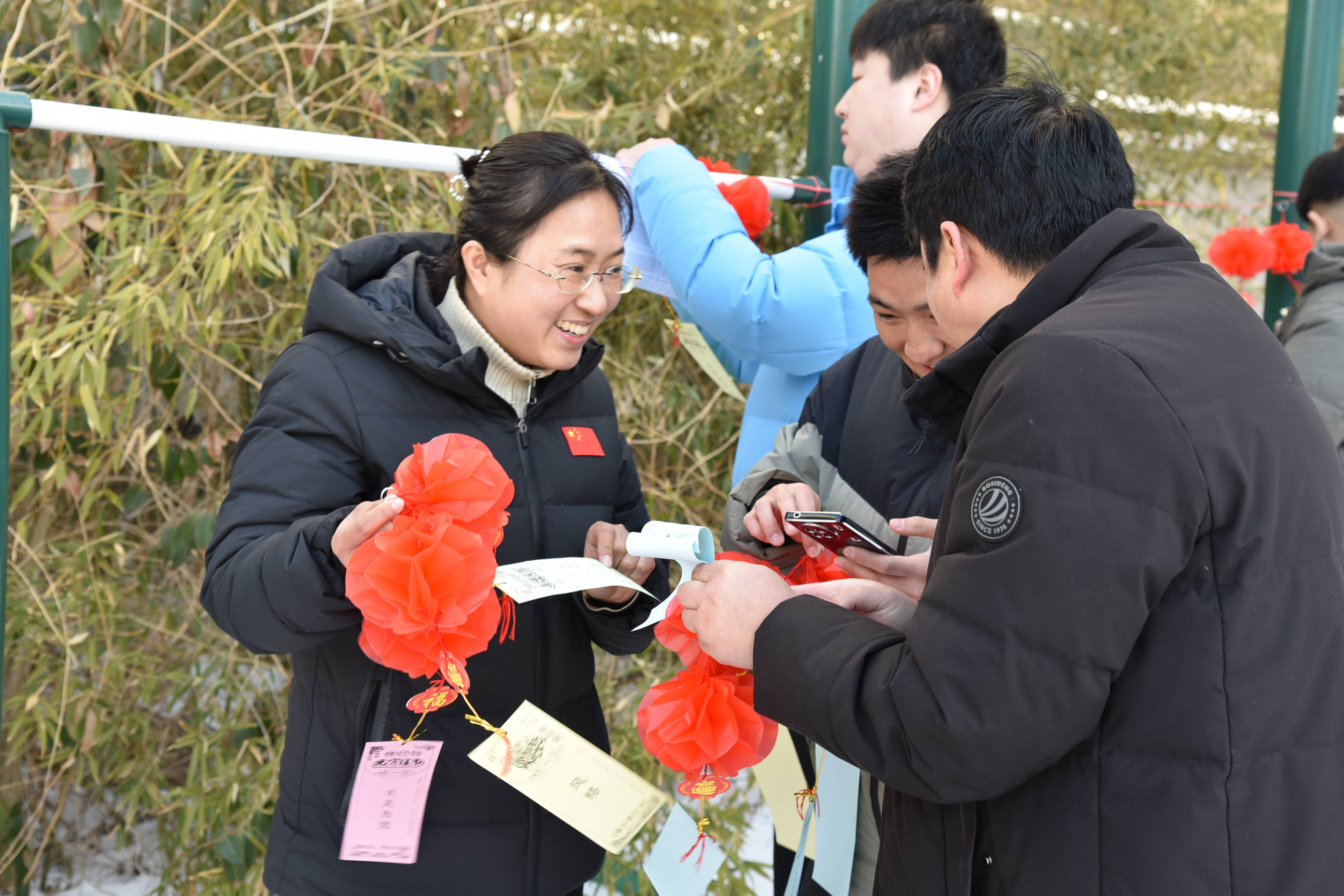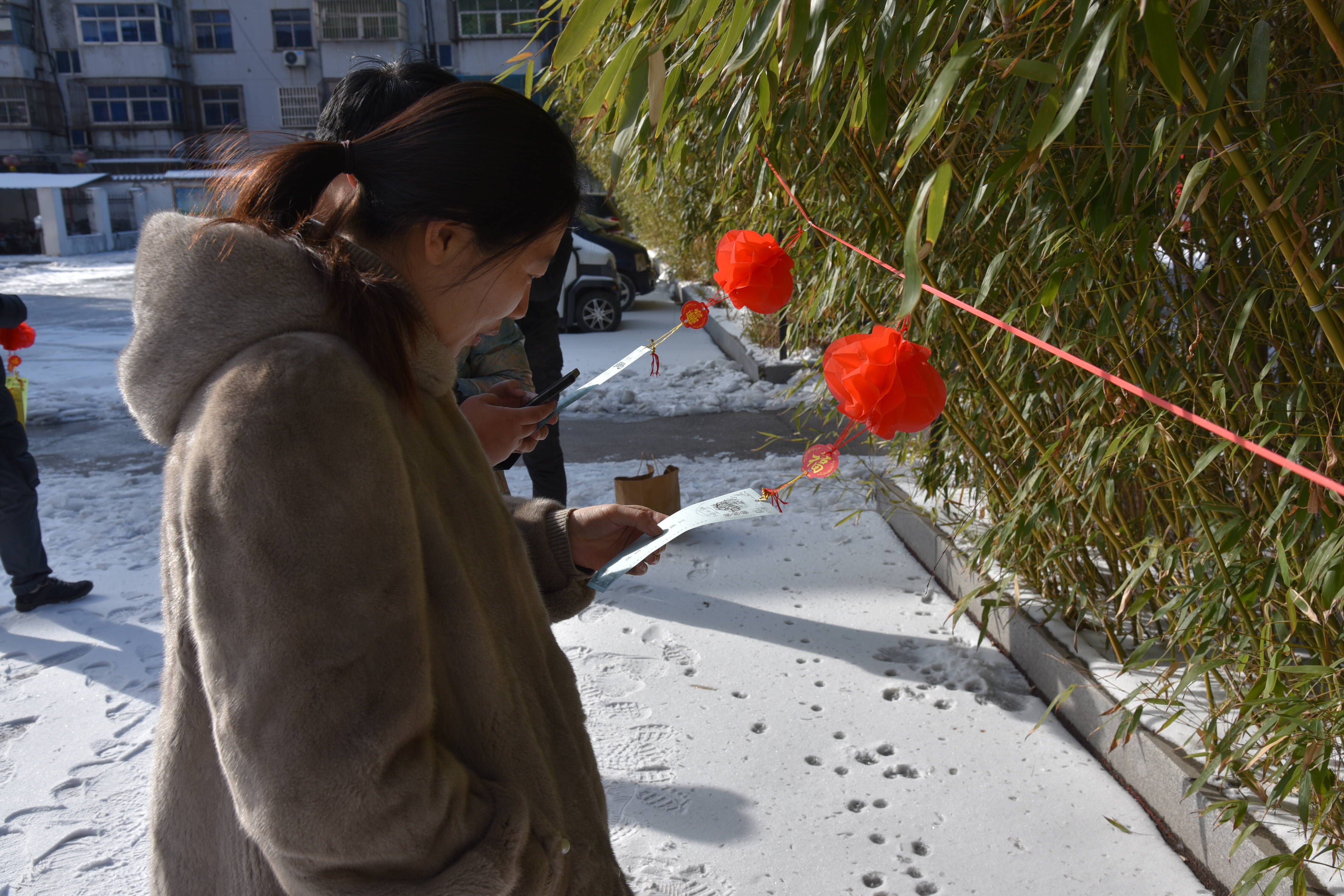 活动现场,气氛热烈,喜庆的灯笼下面悬挂着精心设计的灯谜,谜语内容涵盖了传统节日、成语、地名,也融合了经济金融、扫黑除恶、二十大报告、社会主义核心价值观等知识。现场猜灯谜的人员有的默默沉思,有的互相探讨......不时传来阵阵开心的笑声,猜中灯谜的还获得精美礼品一份。同时还进行了投壶、接龙等活动。