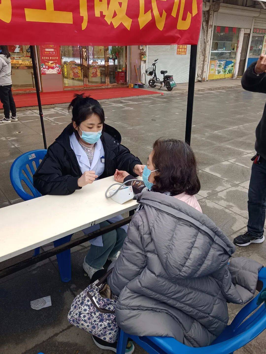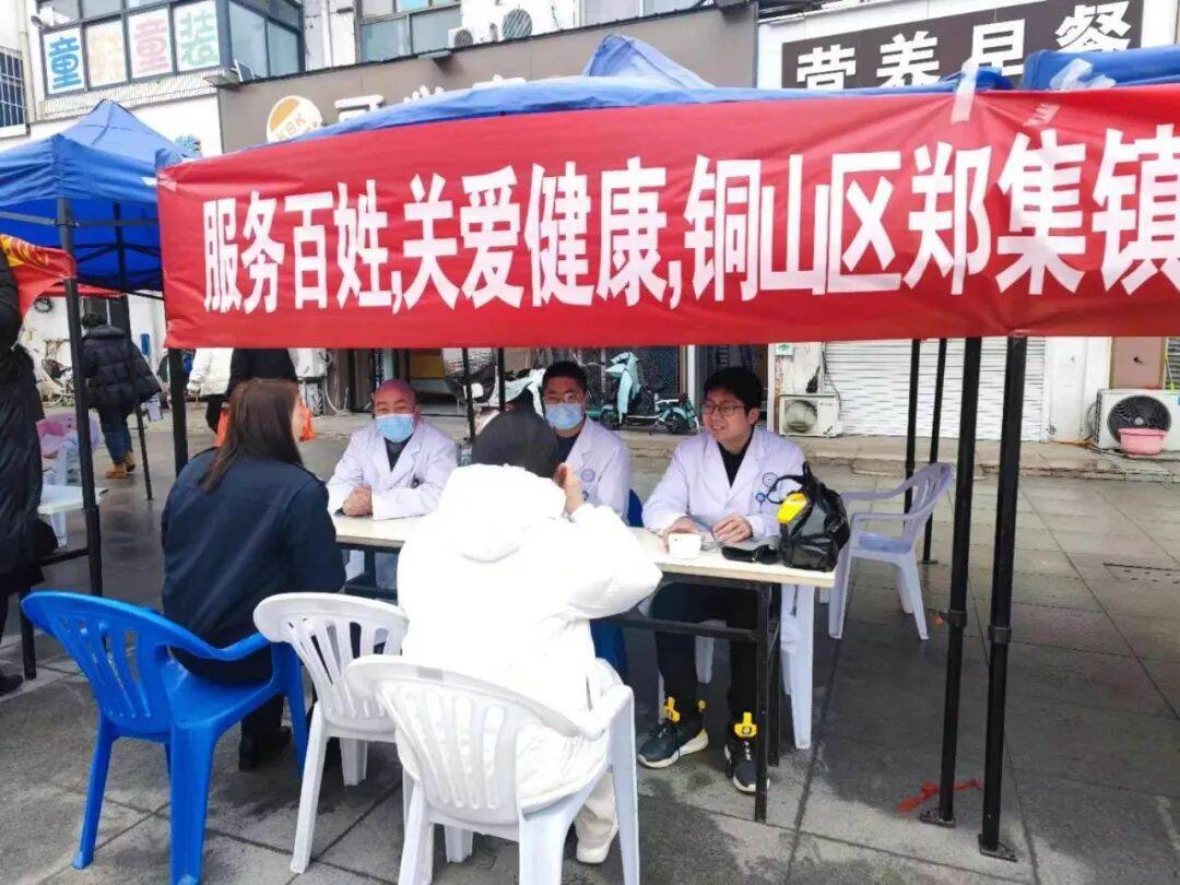 活动现场,郑集镇中心卫生院内科、外科、中医康复科、公共卫生、护理等医务人员现场为辖区居民提供免费测量血压、血氧、健康咨询等服务。
