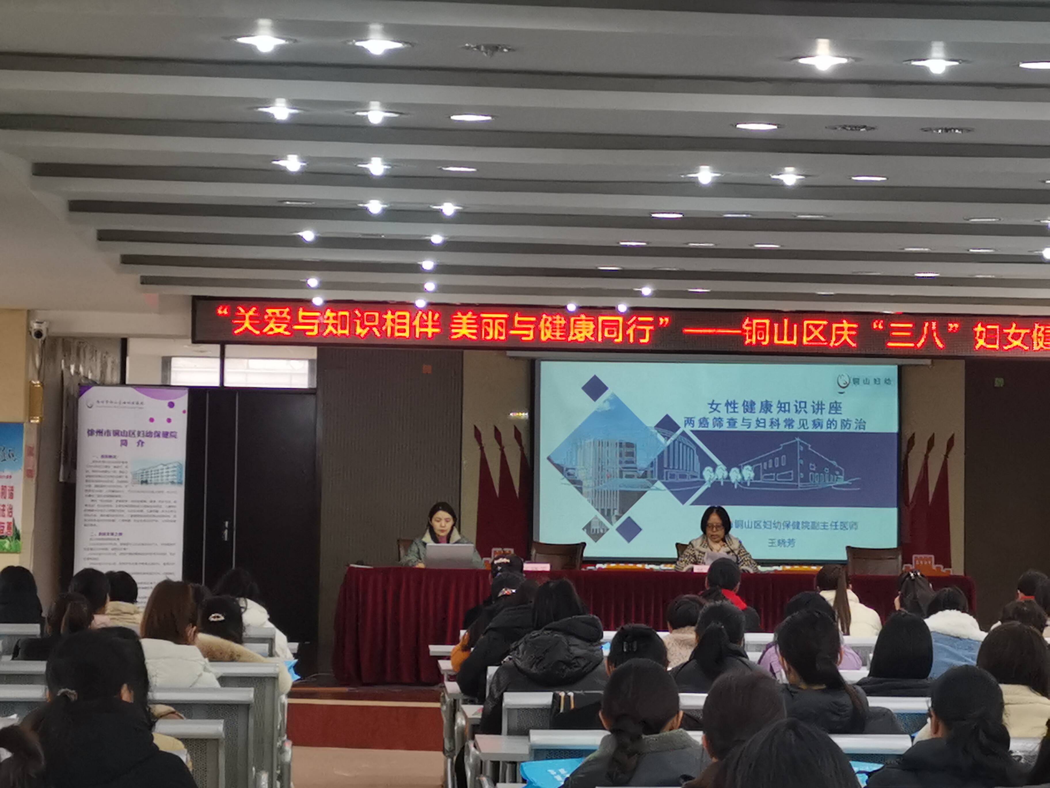 3月4日下午区妇联联合铜山区妇幼保健院组织的“关爱与知识相伴,美丽与健康同行”--铜山区庆“三八”妇女健康知识讲座活动,在樵村社区三楼会议室举行,参会人员约80人,铜山区妇幼保健院王晓芳副院长详细宣传介绍针对“两癌”的发病原因、预防和治疗方法等知识进行讲解,并通过大量实例宣传“两癌”筛查的必要性,建议大家日常生活中要保持良好的心态、健康饮食,养成良好的生活习惯,践行文明健康的生活方式。志愿者现场发放了“两癌”防治健康教育核心知识宣传手册。活动中开展了“两癌”你知道多少的有奖问答,现场气氛热烈,大家积极参与,争相回答问题。工作人员为回答正确的参与者准备了洗漱用品等小礼品。