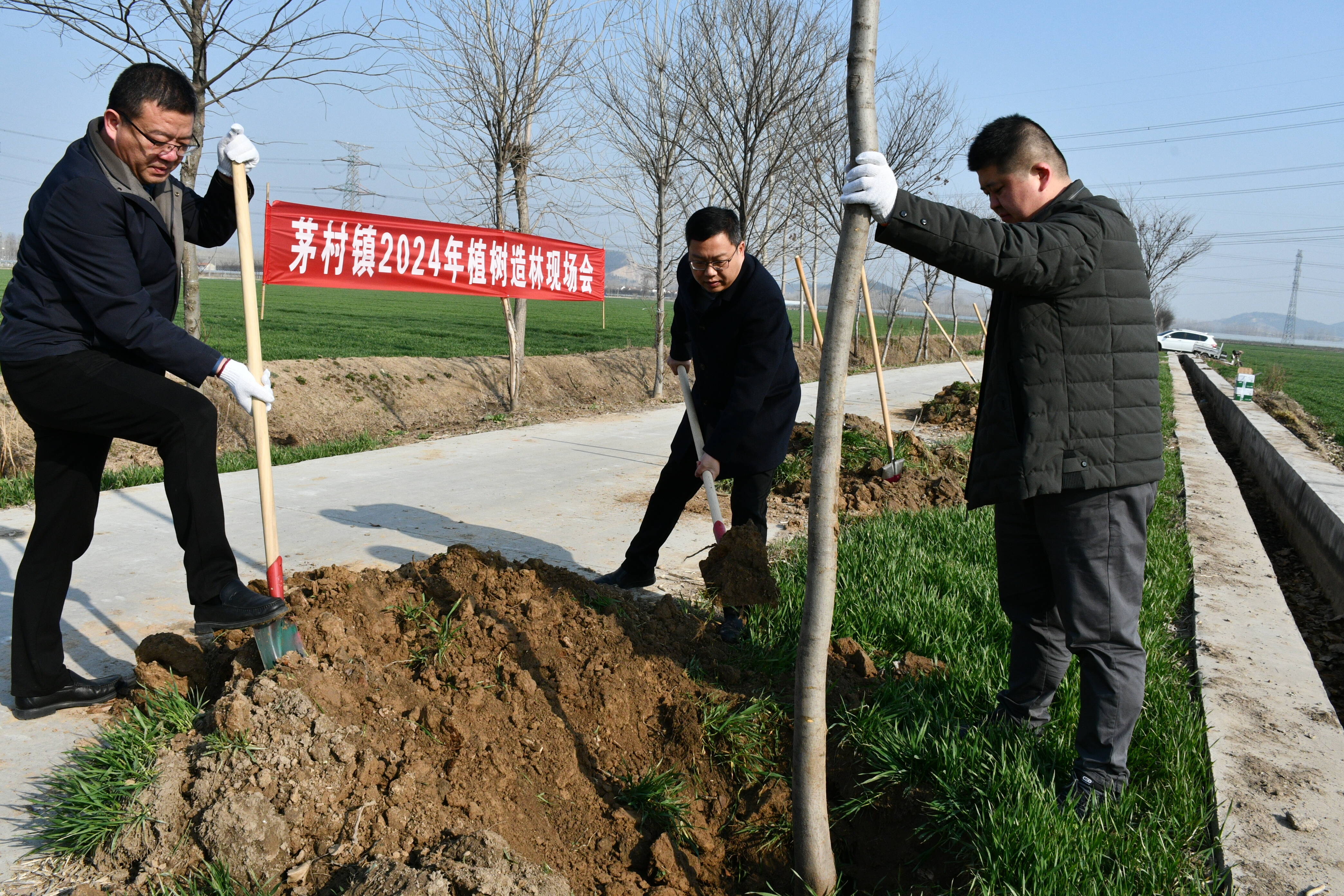 3月12日上午,茅村镇结合党员冬训,组织全体机关人员、党员志愿者、部分退役军人到留武村开展义务植树活动。