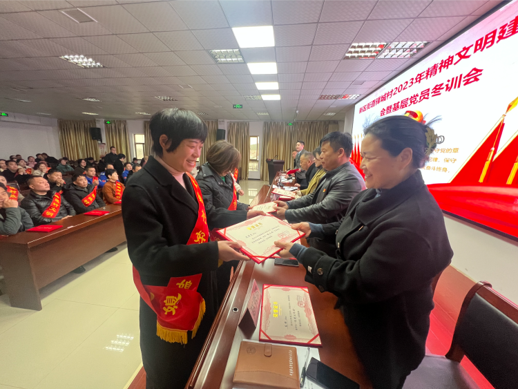 为深入贯彻党的二十大精神,大力培育和践行社会主义核心价值观,营造崇德向善、见贤思齐、德行天下的浓厚气氛,3月17日,驿城村召开2023年度精神文明表彰大会暨基层党员冬训会,会议由村党委副书记刘鹏涛主持,村组干部、党员、受表彰人员参会。