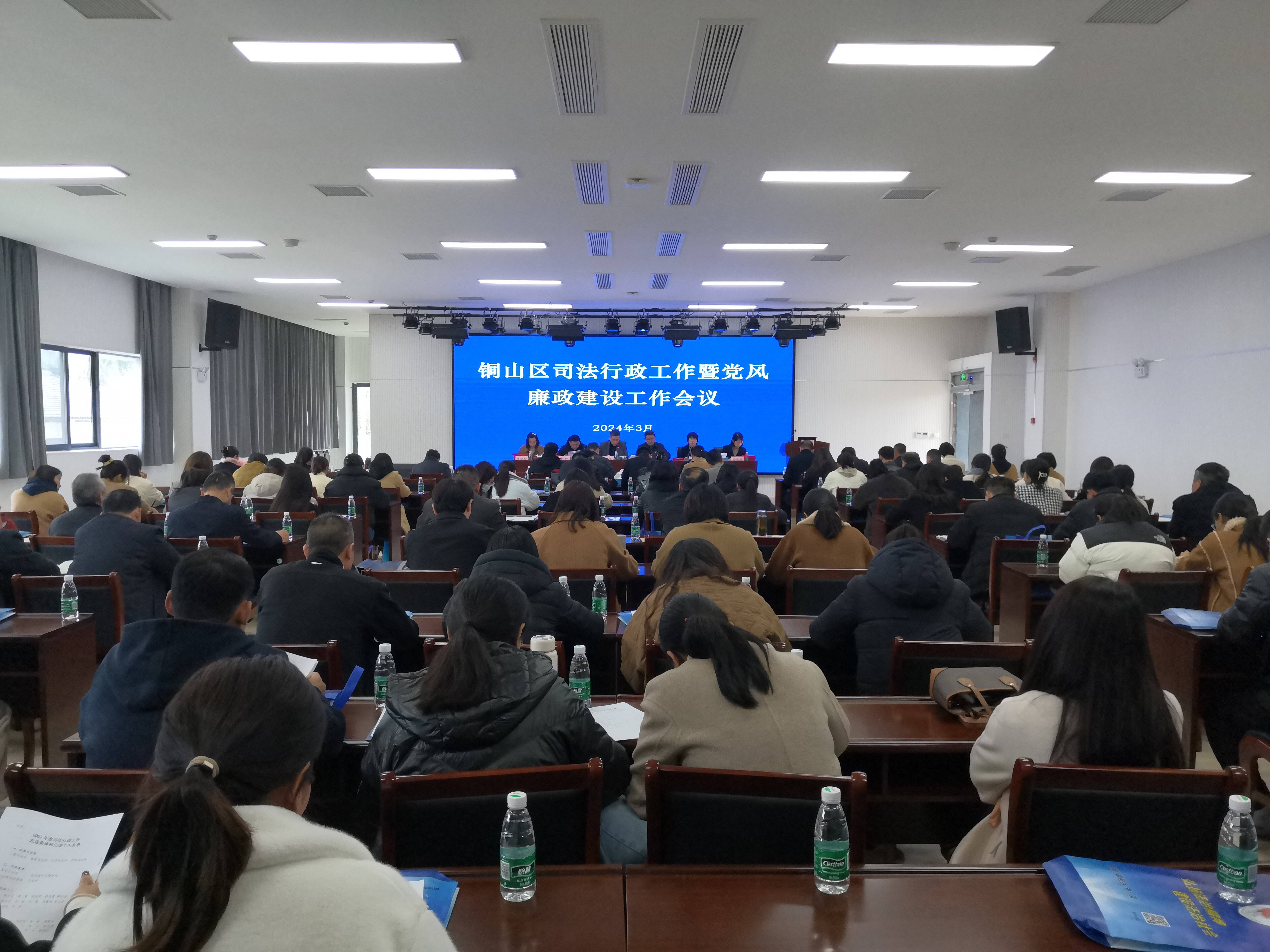 3月18日,铜山区司法局召开全区司法行政工作会议暨党风廉政建设工作会议,局领导班子、各司法所、局机关各科室所有人员参加会议。