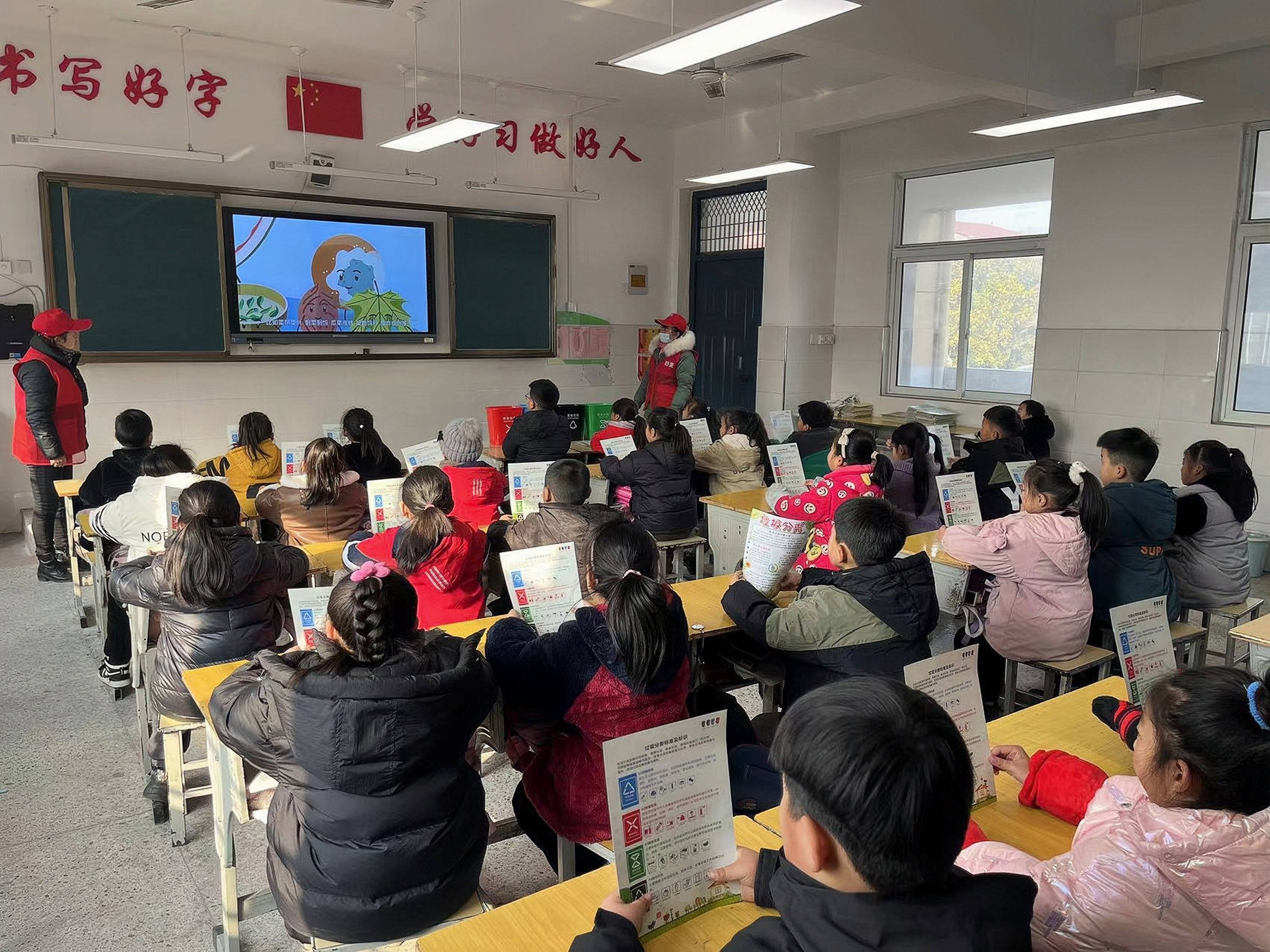 通过“小手拉大手”,带动家庭、学校、镇村共同参与生活垃圾分类,夯实生活垃圾分类工作成效。柳泉镇在各中小学开展“小手拉大手,垃圾分类齐步走”垃圾分类宣传活动,让绿色环保理念在校园里“生根发芽,开花结果”。活动现场,垃圾分类志愿者向孩子们发放垃圾分类宣传册并为他们讲解垃圾分类相关知识。通过有奖问答、游戏互动等形式,在轻松活泼、寓教于乐的氛围中引起学生们对垃圾分类的浓厚兴趣,让学生们对垃圾分类的概念有了更为清晰的理解。向全镇的家长和学生发出倡议,呼吁全镇家长学生争做垃圾分类的实践者、宣讲者、推动者和志愿者,家校联合,共同参与垃圾分类工作,共同引领垃圾分类新时尚。