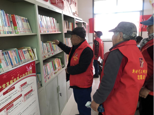 “我最喜欢看这本《三国演义》,电视也看过好几遍,但还是书上写得更加精彩啊!只不过我现在眼睛不太管用了,看得比较慢,每天干完活要是还有空闲,我都会来这看会书嘞。现在政策好啊,咱们也有自己的图书馆,要是能再大点就更好了。”其中一个大叔边仔细摩挲着书架上的书边和同伴絮叨着。
