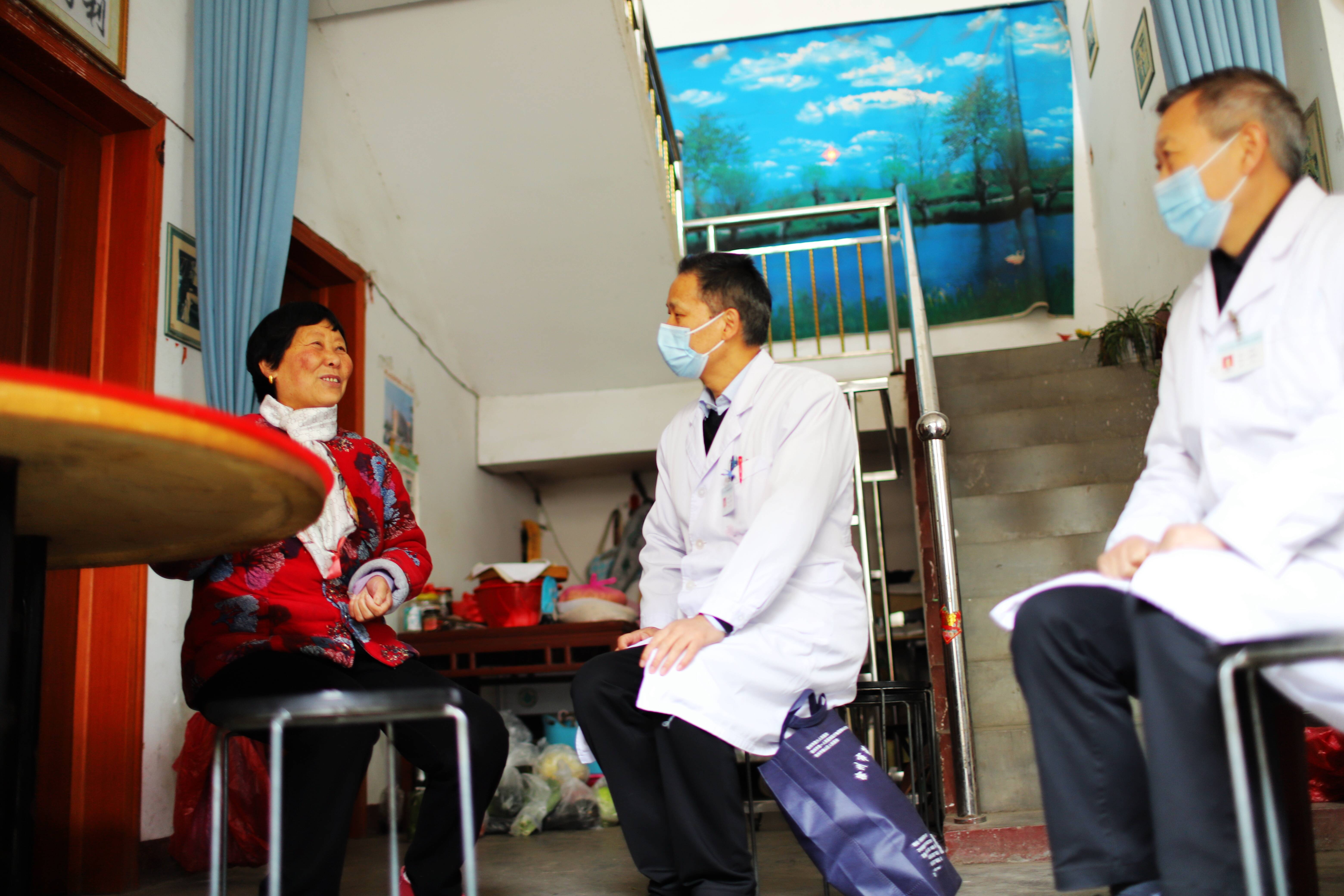 今年69岁的王启香老人患糖尿病多年,昨天在得知有区里市里的医疗专家来为村民免费义诊后,今天本想早早就到村卫生室去排队,结果没想到医院的专家竟然踏进了她的家门。