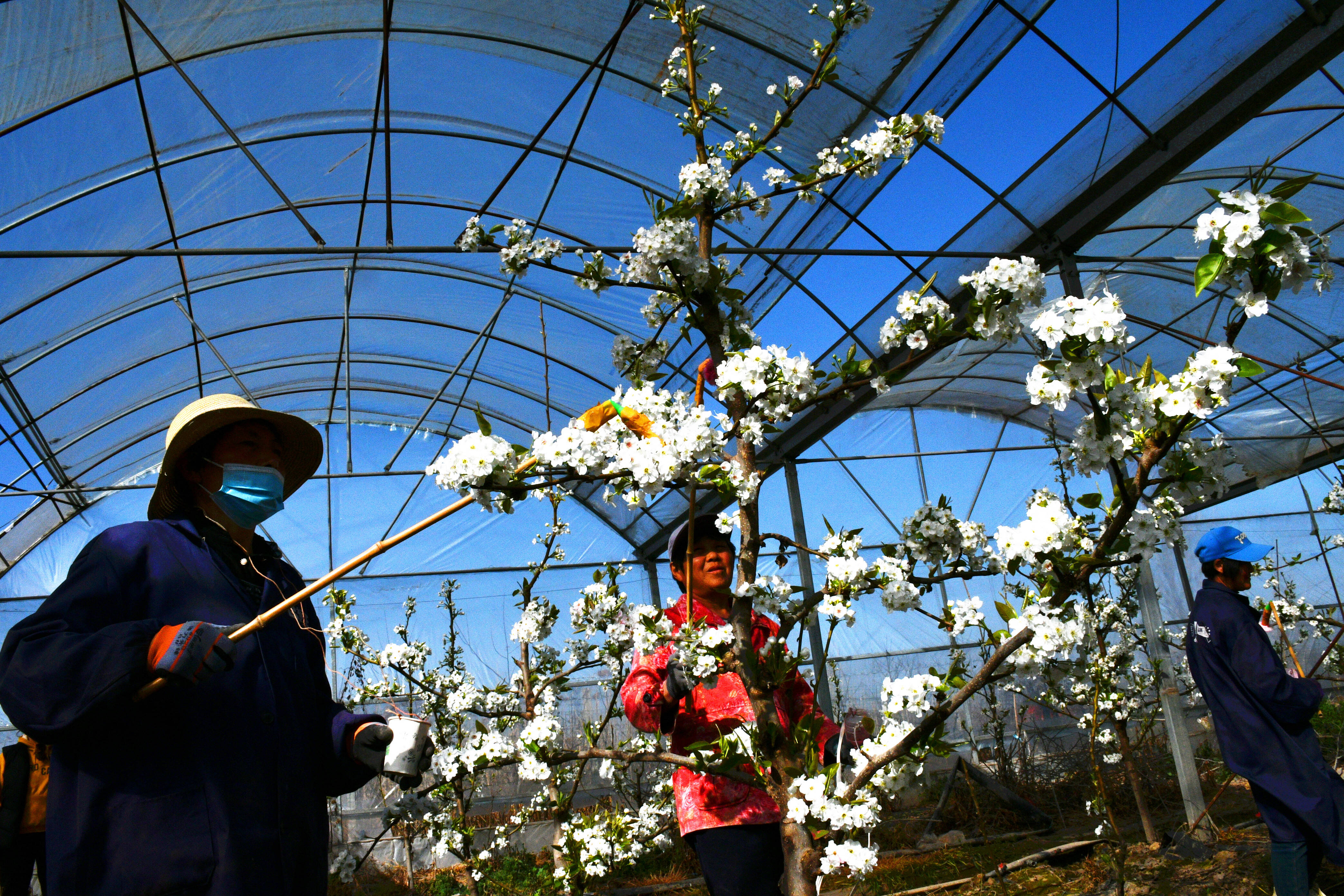 为梨花进行人工授粉