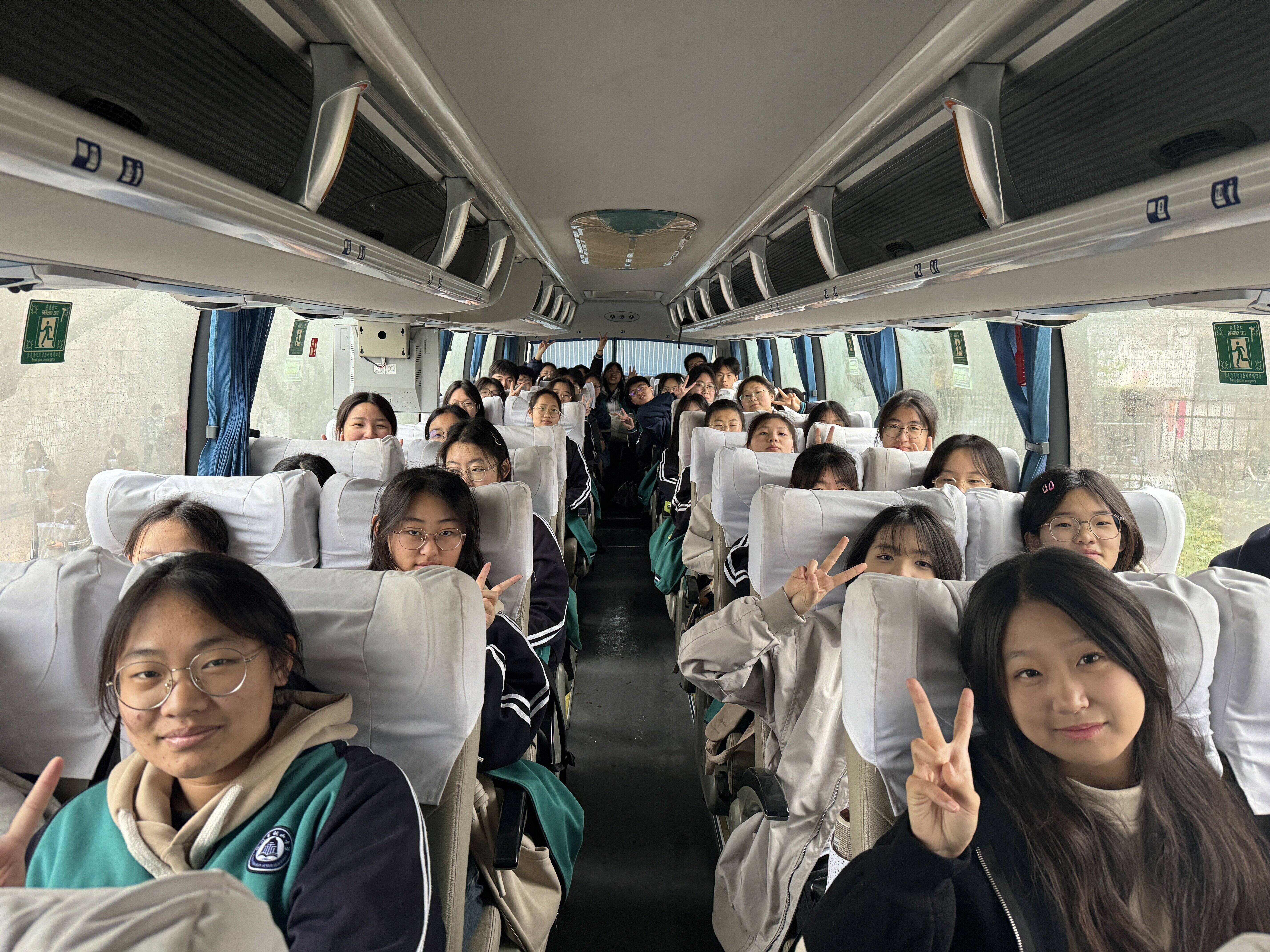 清晨,阳光明媚,学生身着整洁的校服,佩戴着红十字会的标志,满怀期待地踏上了前往曲阜的旅程。一路上,大家欢声笑语,对即将开始的研学活动充满了期待。