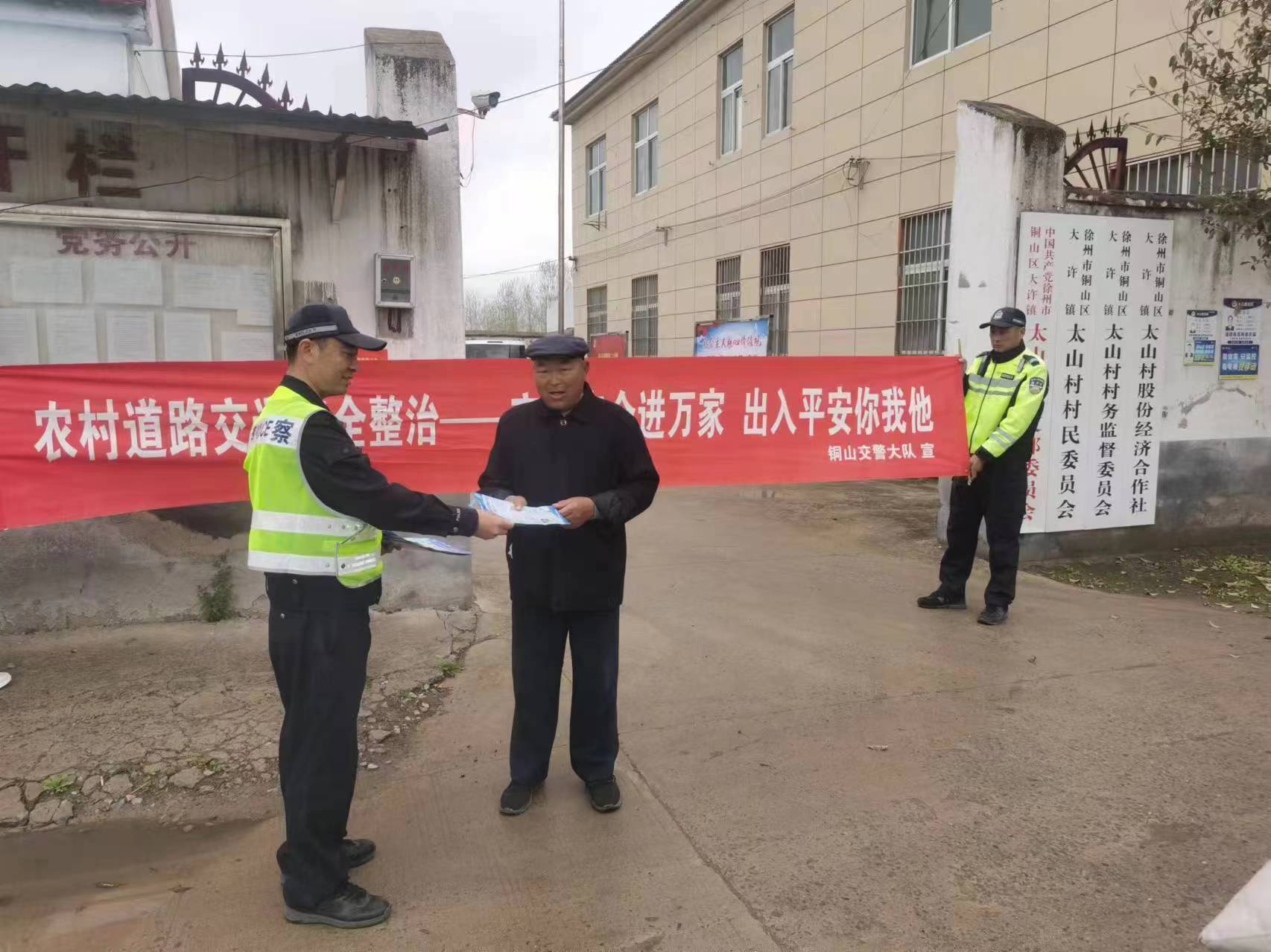 为进一步提高广大农民群众安全出行、文明出行意识,最大限度预防和减少农村道路交通事故的发生,铜山交警结合“全市春、夏季公路交通安全专项整治百日攻坚行动”,以“美丽乡村行”交通安全宣传活动为契机,进一步巩固农村交通安全宣传阵地,聚焦“一老一小”重点人群,走村串巷,把交通安全知识送到群众身边,筑牢道路交通安全屏障。