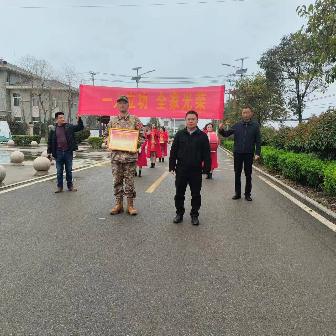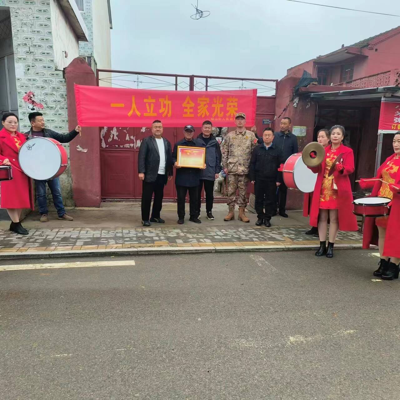 近日,铜山区柳泉镇高皇村锣鼓喧天,热闹非凡。镇武装部、退役军人服务站和高皇村委会工作人员一起高举鲜红的标语,手捧立功喜报,来到现役军人陈珂家中,将其在部队荣获三等功的军功喜报和慰问金送到其亲人手中。