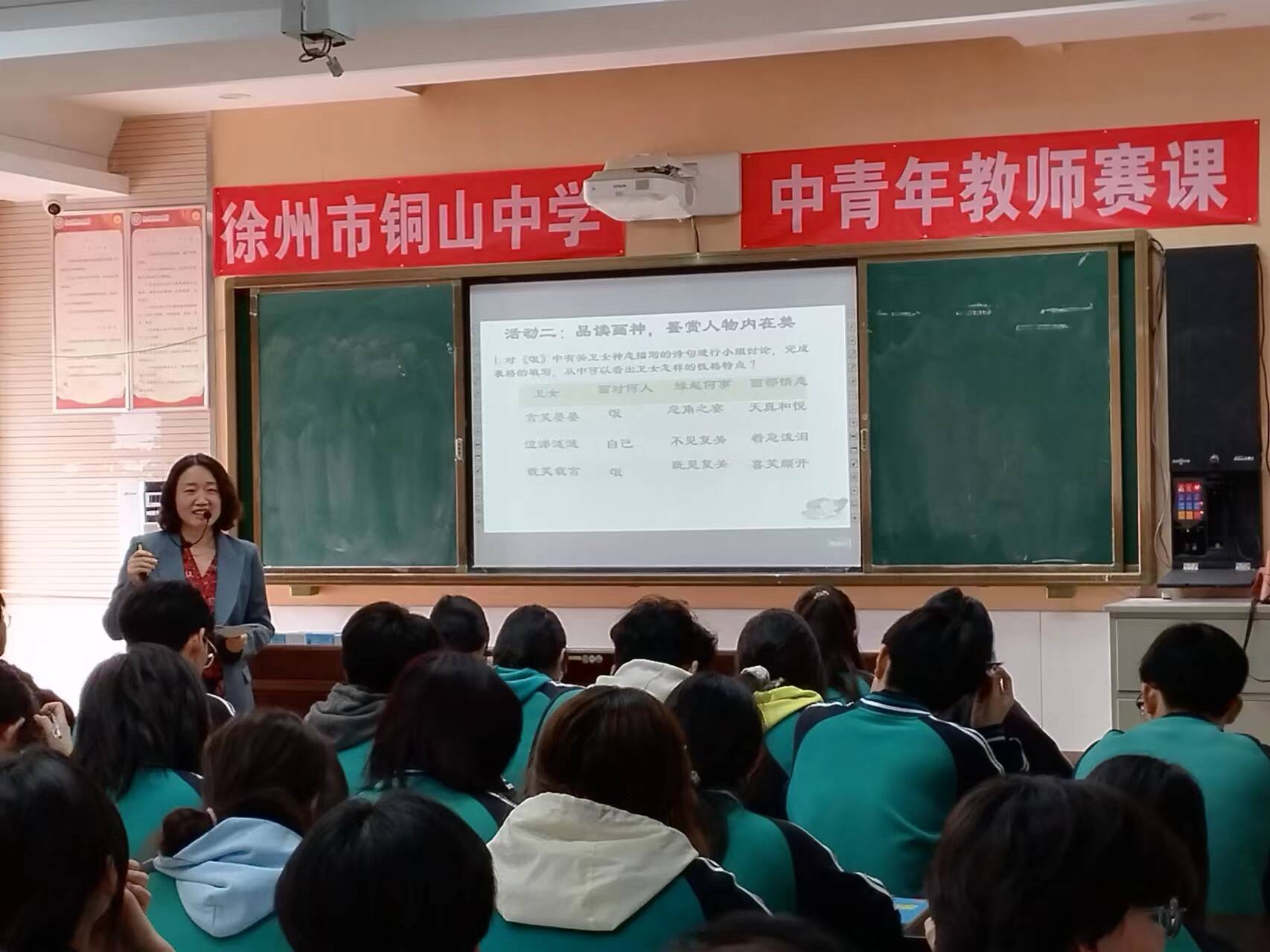为扎实推进强科提质活动,切实增强教师专业水平,持续提升学校教学质量, 4月9日和10日,铜山中学继续举行了语文学科和数学学科中青年教师赛课活动。一节优质课是教师的匠心之作,也是教师与学生一同谱写的美篇。4位青年教师用她们亲切的教态、科学的设计、扎实的功底展现了她们良好的课堂驾驭能力,为在场的师生们献上了一场视觉和知识的盛宴。