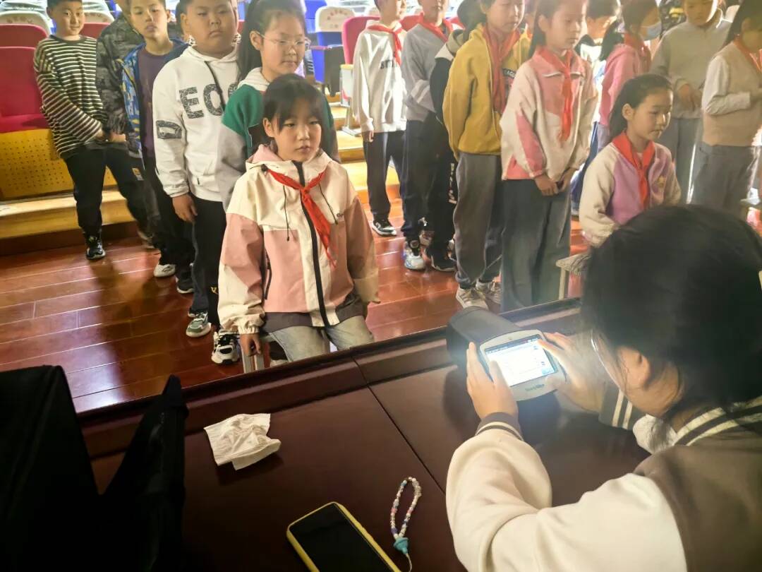 眼睛是心灵的窗户。屈光度检测能够了解学生的视力情况,实现早诊断,早发现,早治疗,让明亮清晰的眼睛伴随孩子们健康成长。今后学校将继续加大力度开展与用眼护眼有关的健康教育活动,努力营造学生的光明未来。