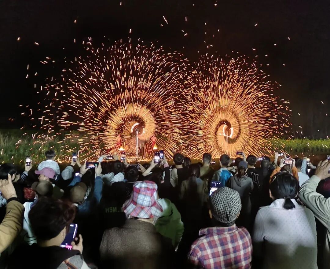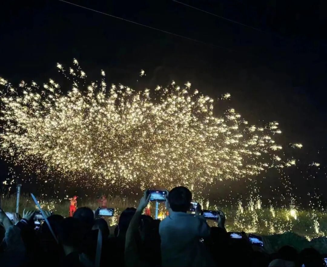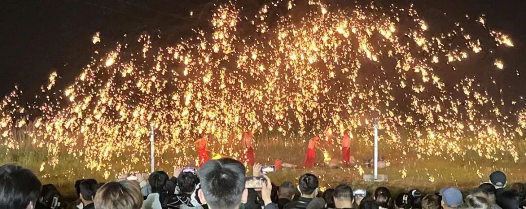 与往年相比,今年的彭祖庙会有了新的亮点。夜幕降临,非遗技艺“打铁花”精彩上演,闪烁的铁花在夜空中倾泻而下,如同绚烂的烟花雨,场面颇为壮观,吸引了很多游客纷纷驻足。大家纷纷举起手机,拍照打卡留念,记录下这美丽、滚烫、灿烂的场面。