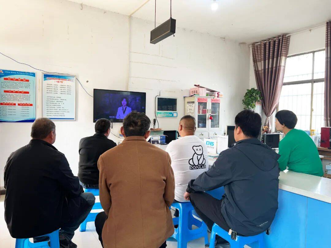 ▲镇机关工作人员观看《反间谍法》宣传片