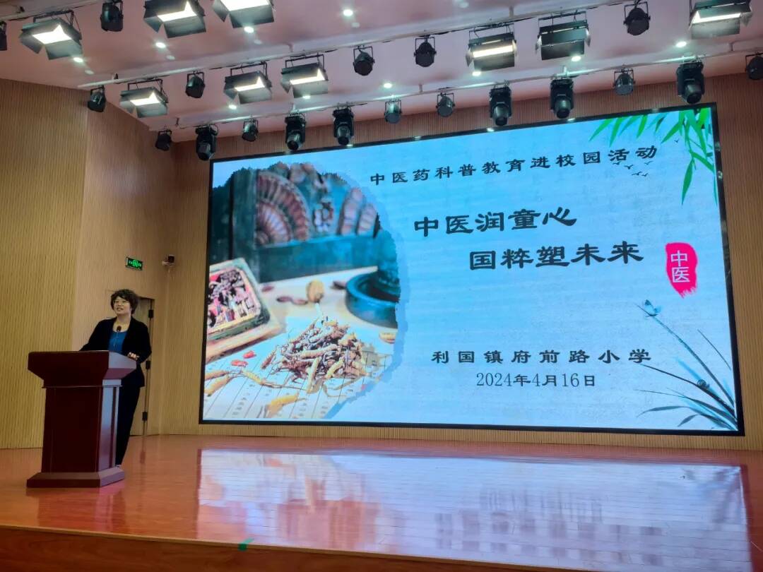 讲座以府前路小学校长周秀做致辞,指出我们将以本次“中医药进校园活动”为抓手,弘扬中医药国粹,传承中医药优秀传统文化,让成长中的府小学子接受中医药文化熏陶教育,传递中医药文化核心内涵,积极引导认识中医药、热爱传统文化,增强咱们的民族认同感及归属感。铜山区利国镇利国中心卫生院党支部副书记李晓静在宣讲中强调:中医药文化入校园,既是对传统文化的传承和弘扬,也是对同学们健康成长的关注和促进,今天的活动仅仅是一个开始 ,希望同学们在传承与实践中成为德智体美劳全面发展的府小少年。