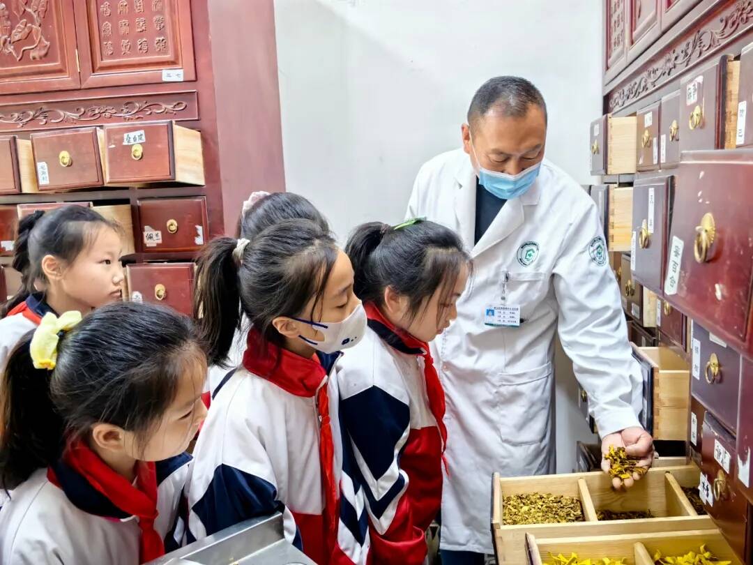 讲座结束以后利国镇府前路小学组织二十余名少先队员代表走进利国镇利国中心卫生院,沉浸式感受中医传统文化的魅力。