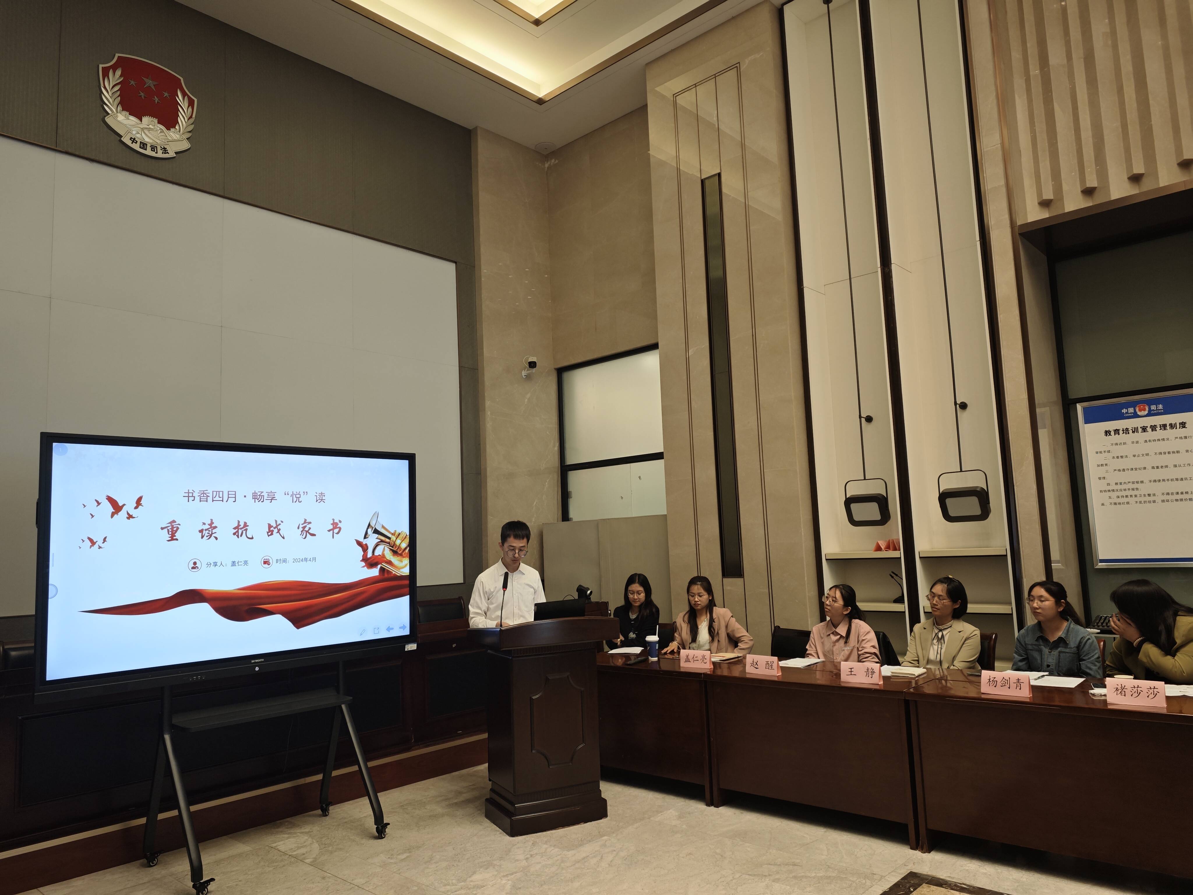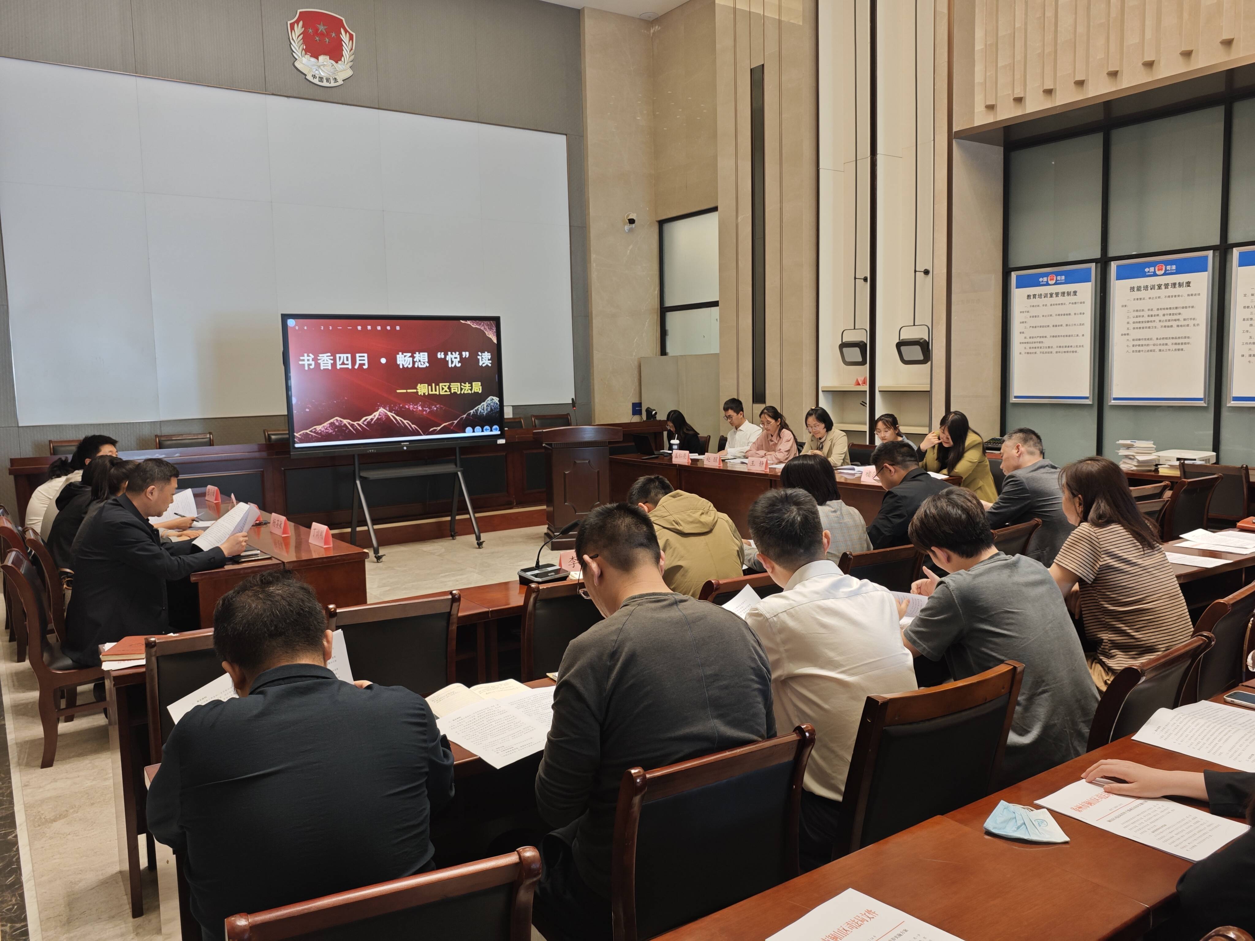 4月23日,铜山区司法局举办“书香四月•畅想‘悦’读”青年读书分享会活动。分享会上,该局10位青年代表现场分享了自己最喜爱的一本书,30余名司法行政干部职工齐聚一堂、集中交流。