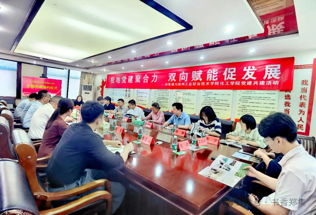 实地调研结束后,双方签订共建协议并座谈,就学习党中央关于新质生产力、高质量发展的有关文件精神进行研讨。郑集镇党委书记刘锋从郑集的教育特色、城镇特点、产业状况等方面进行了介绍,各位分管负责人分别结合郑集镇实际需求,就环保工程、食品加工、安全生产、机械制造、耐磨材料、产业规划培育等议题,与化工学院的教授、专家进行交流研讨,提出合作方向。曾凡远表示,通过调研、交流,大家收获很多,希望双方能够通过支部共建,探索合作新模式,确保取得实效,促进乡村振兴。