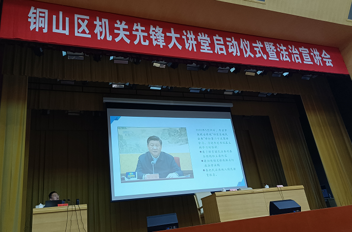 4月30日,铜山区在会议中心大礼堂组织第一期“机关先锋大讲堂”活动,邀请江苏师范大学法学院陈清副教授就“民法典”相关问题作专题辅导,区委组织部副部长、区机关工委书记袁月云主持。全区机关各部门机关党委(总支、支部)书记、机关各部门青年党员和各执法单位执法人员共284人参加。
