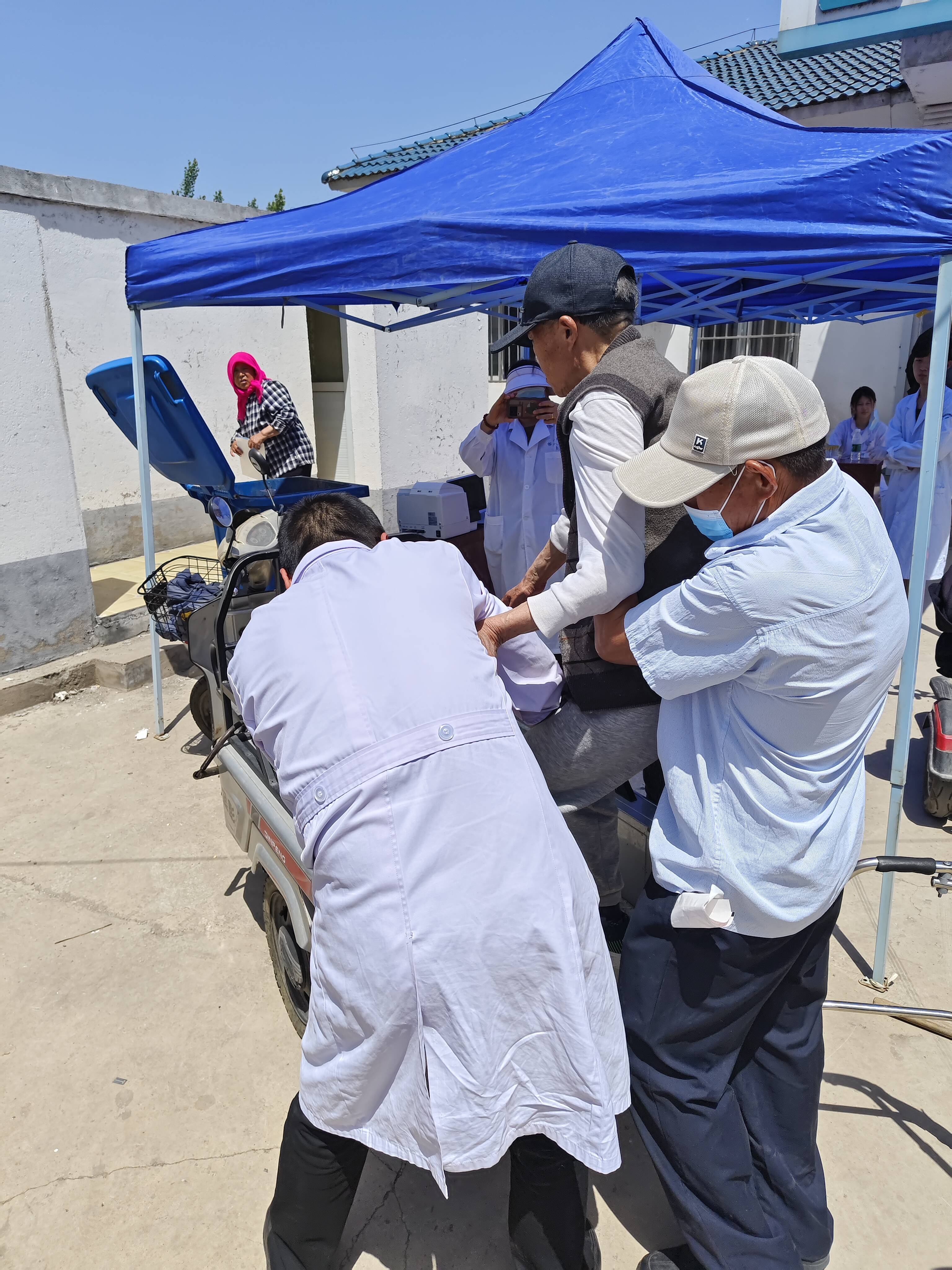 针对行动不便前来体检的居民,利国镇中心卫生院工作人员帮忙搀扶,确保前来体检的居民顺利安全完成体检工作。