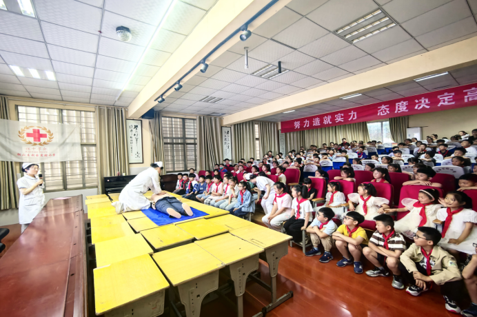 为向师生呈现生动深刻的心肺复苏展示,利国镇中心卫生院高度重视,积极组织护理部精兵强将进行操作预演,提前构思如何与学生积极互动,让学生们在这个特殊的课堂上感兴趣、记得牢。
