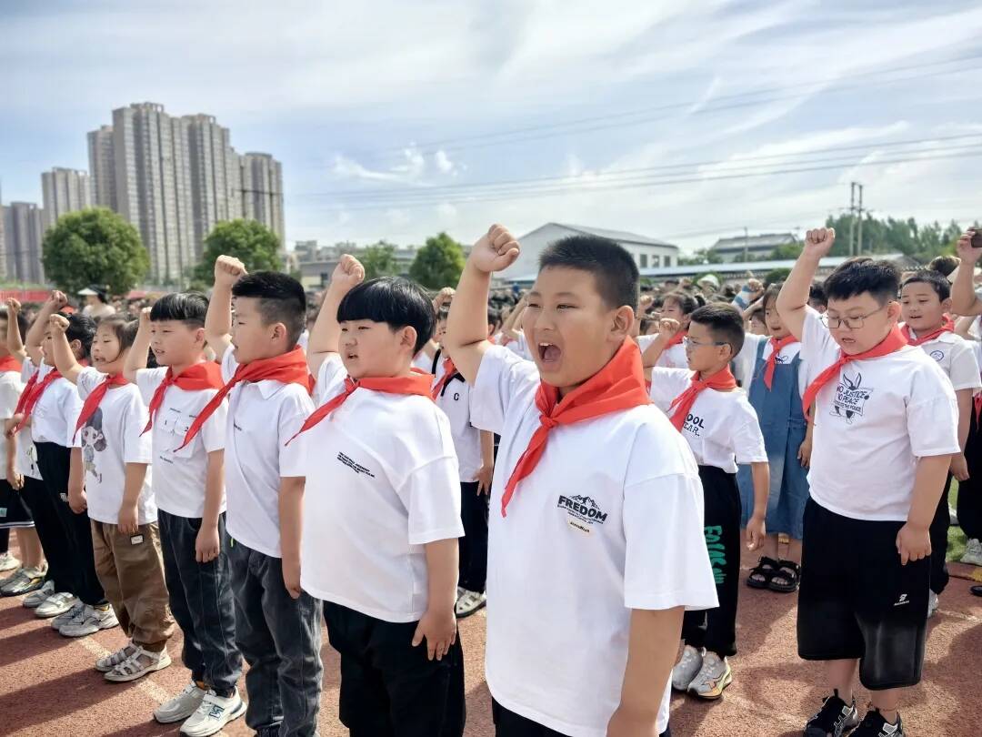 少先大队辅导员于海峰老师带领队员呼号。“时刻准备着”久久回荡在校园,府小少年立志在少先队组织中好好学习、好好锻炼,努力成长为让党放心、爱国奉献、能够担当民族复兴大任的时代新人。