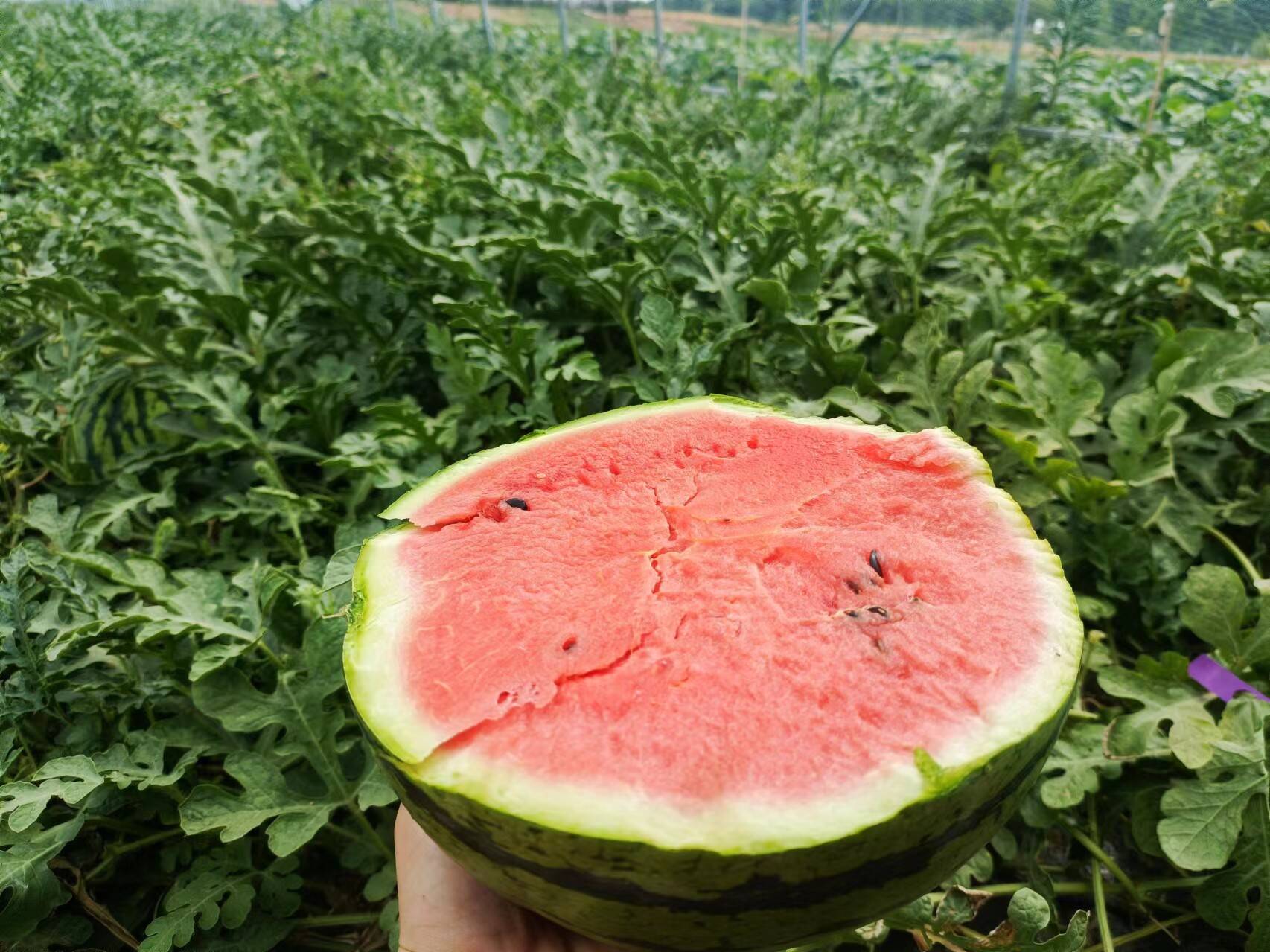 “我们种植的是‘8424’西瓜,成熟早、坐果性好、皮薄瓤脆,市场接受度广。西瓜在上市前就与经纪人签订了‘订单’销售协议,可以说是‘田头摘,田头卖’,种多种少不愁卖。”杨庄村党支部书记杨永介绍,杨庄村的这块瓜田,种植地块土壤肥沃,易排易灌,采用发酵大豆有机肥深施,减少农药化肥的使用,全程利用人工除草、物理方法诱杀害虫等方法,确保西瓜无论在外表还是口感上都有不错的表现。目前村集体共种植“订单西瓜”6亩,这是第一年种植西瓜,按目前瓜苗的长势和西瓜的销量来看,大概亩产5000多斤,每亩可增加村集体收益6000余元。从种植到采收,还能带动周边五、六名村民实现就近务工。西瓜卖完后大棚里继续种植反季蔬菜,一年的收入也十分可观。