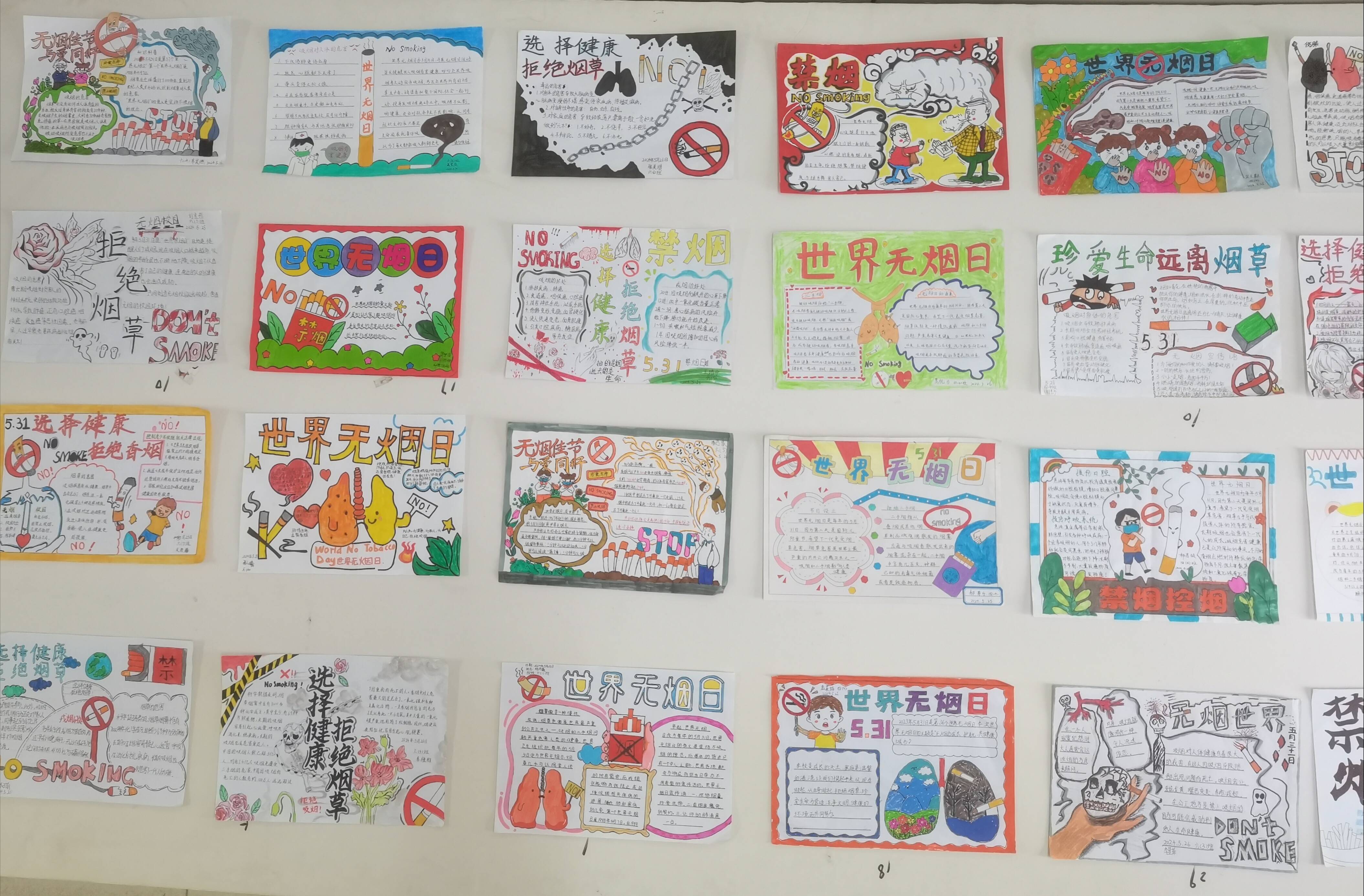学生们拿起自己的画笔和工具,制作手抄报,时刻提醒人们禁止吸烟,保护自己和他人的健康。