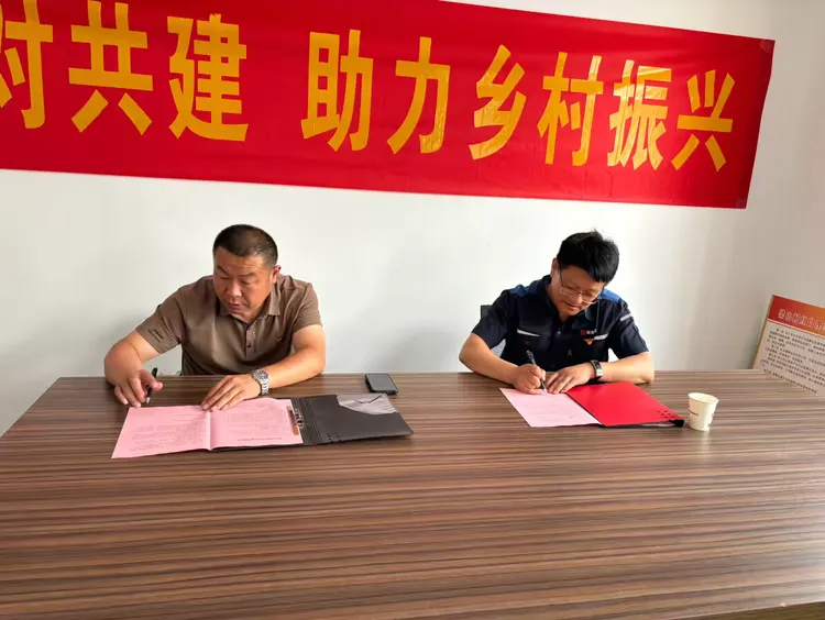 在座谈会上,双方介绍了各自基本情况,按照“以党建为引领,以联建聚合力,以共建促发展”的思路,共同探讨了党组织建设、业务发展、党员作用如何发挥、党员干部如何带头等相关问题。依托双方资源,明确共建举措、确立共建目标,并研究制订长效机制,找准村集体经济发展的新路径。以“村企”共建为契机,开展共建活动,促进双方共同进步。随后,徐州新盛粮食有限公司副总经理孙梦华与村支部书记刘亮同志共同签订《村企共建助力乡村振兴协议书》。