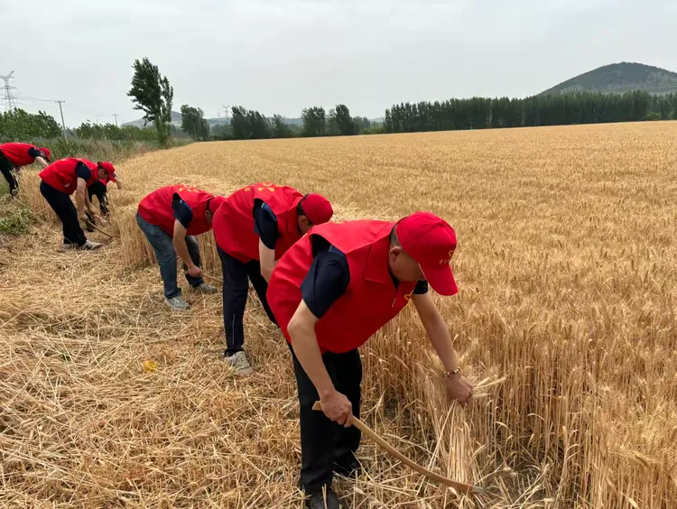 紧接着开展“助农抢收、颗粒归仓”志愿者服务活动,在人手最紧缺时,一群“红马甲”的悄然出现,让村民们喜不自禁。党员志愿者纷纷加入收割队伍,为方便联合收割机顺利进入麦田,志愿者用镰刀及时收割地头小麦,有的志愿者积极维护收割秩序,帮助群众转运粮食,清运秸秆。