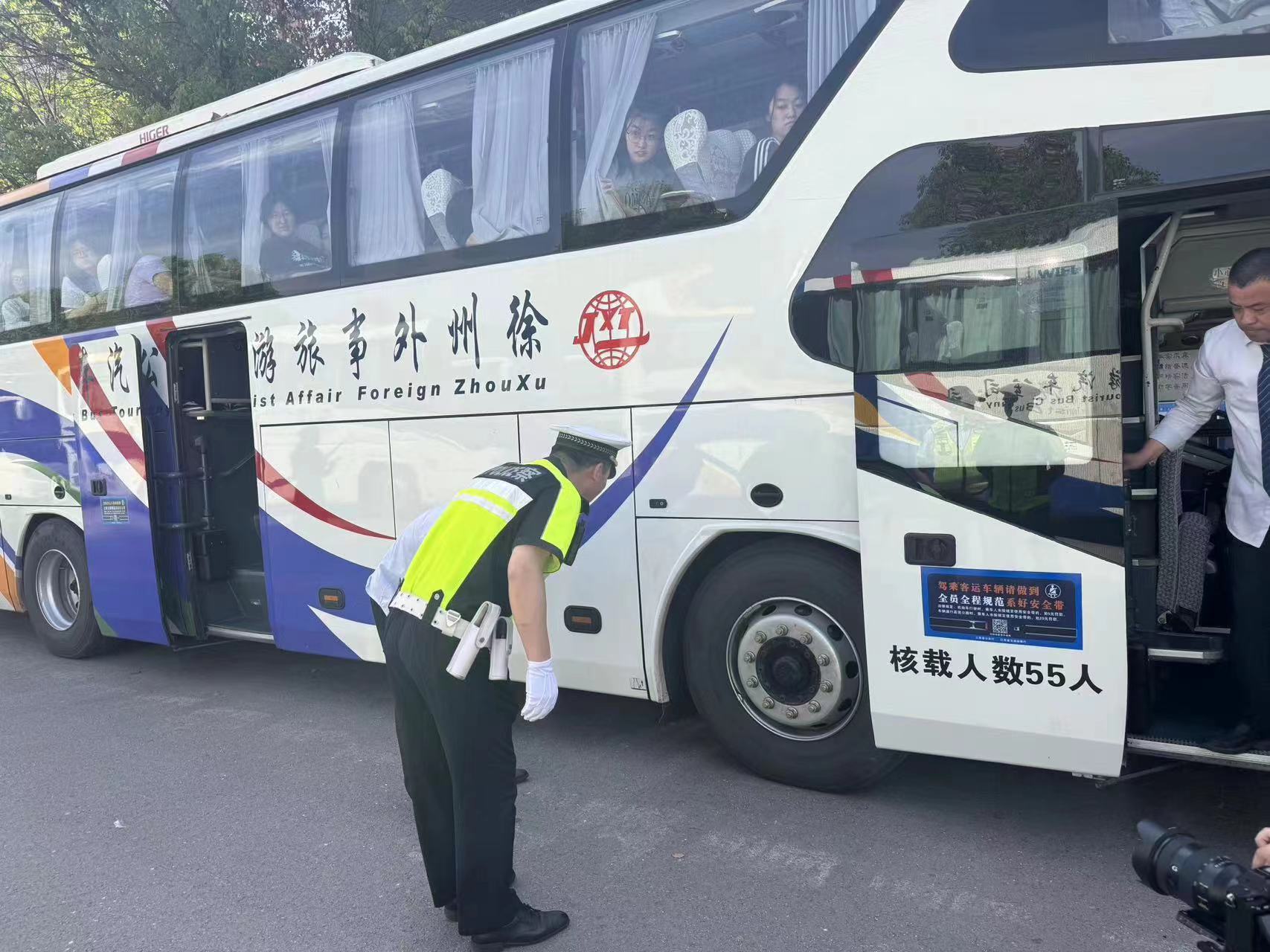 铜山交警大队爱心护考启动仪式在铜山郑集中学城区分校举行,城区中队曹磊队长对送考客运车辆的驾驶员进行安全教育,要求他们要知觉遵守交通法规,安全文明,要把每一名考生安全送到考点。并逐一检查送考车辆安全设施,轮胎,灭火器,自动车门等部件,确保送考车辆安全正常运行。铜山交警大队特制作印有“铜山交警祝莘莘学子金榜题名”的横幅标语祝贺。