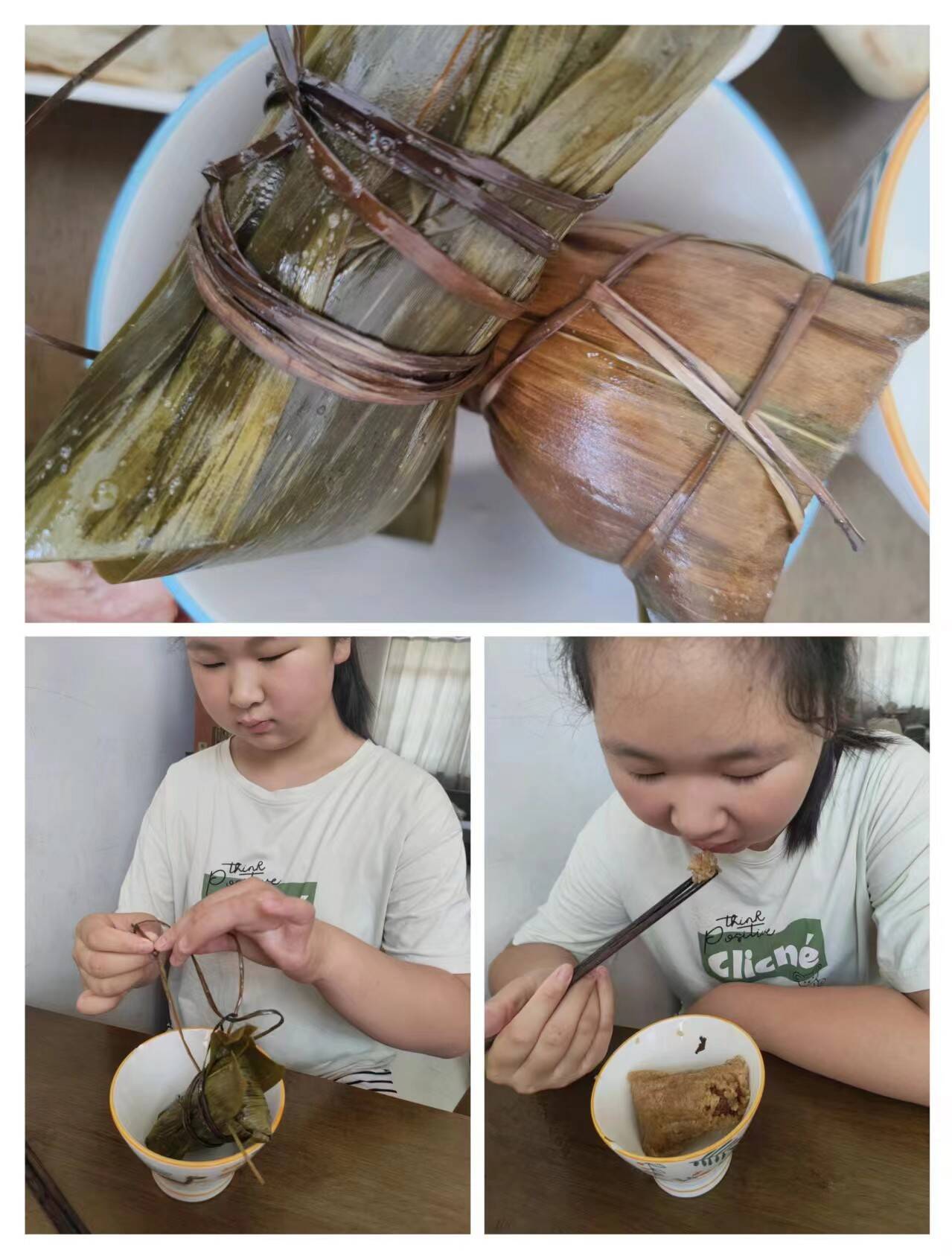 在家长的悉心指导下,队员们认真学习并实践着包粽子的传统技艺。通过这一实践活动,队员们不仅亲身体验了传统文化的魅力,更在行动中传承和弘扬了中华民族的优秀习俗。
