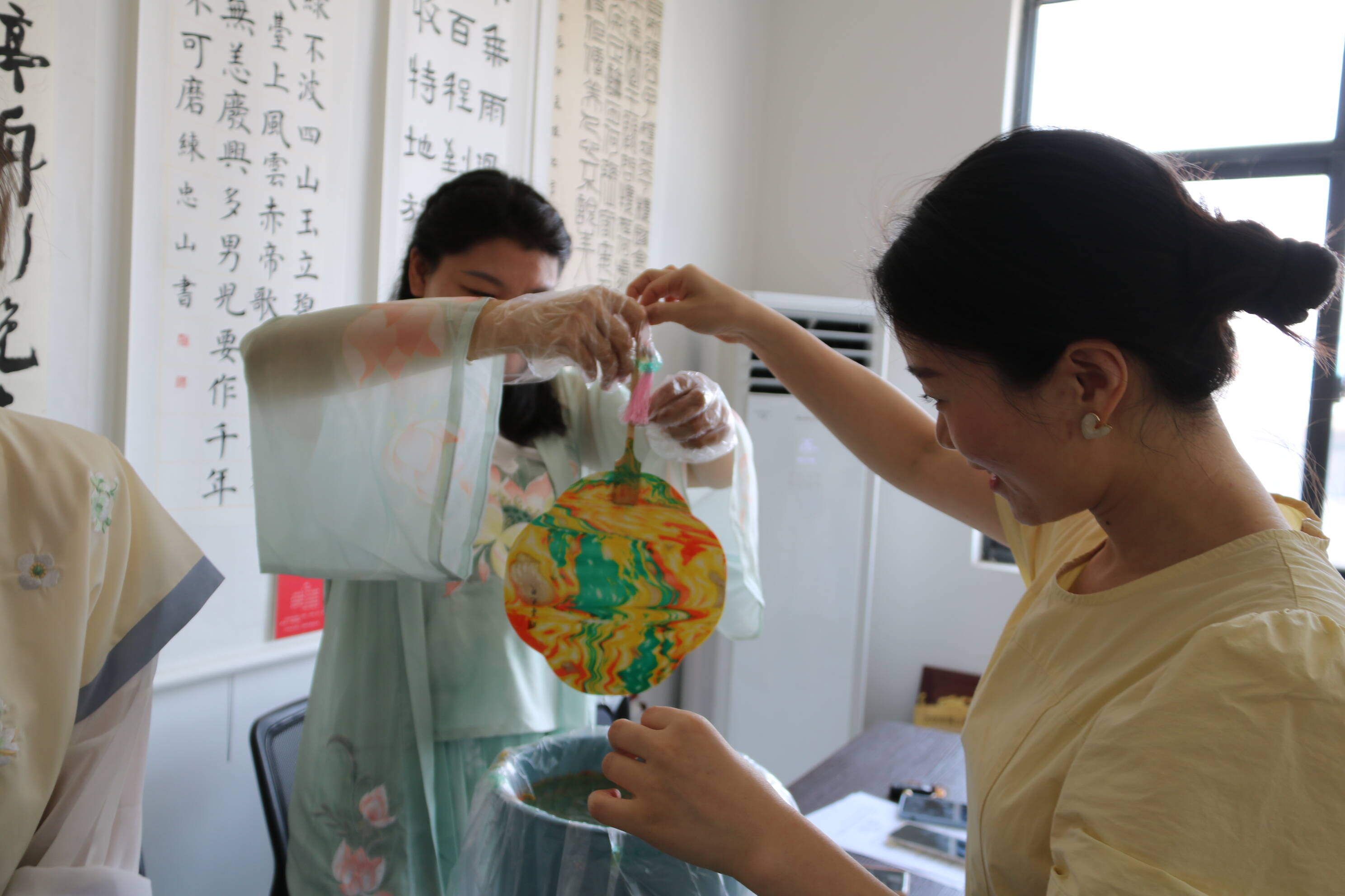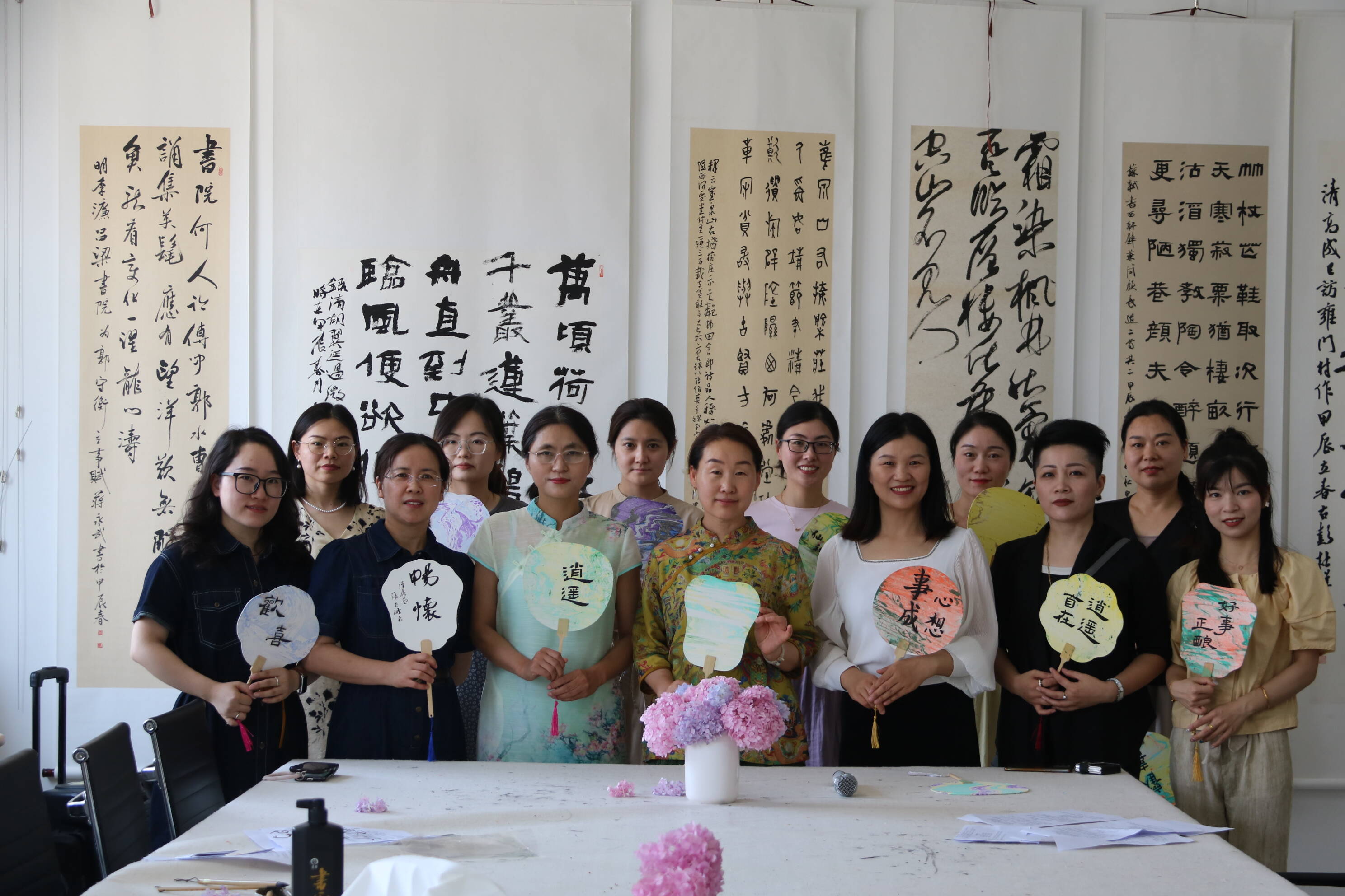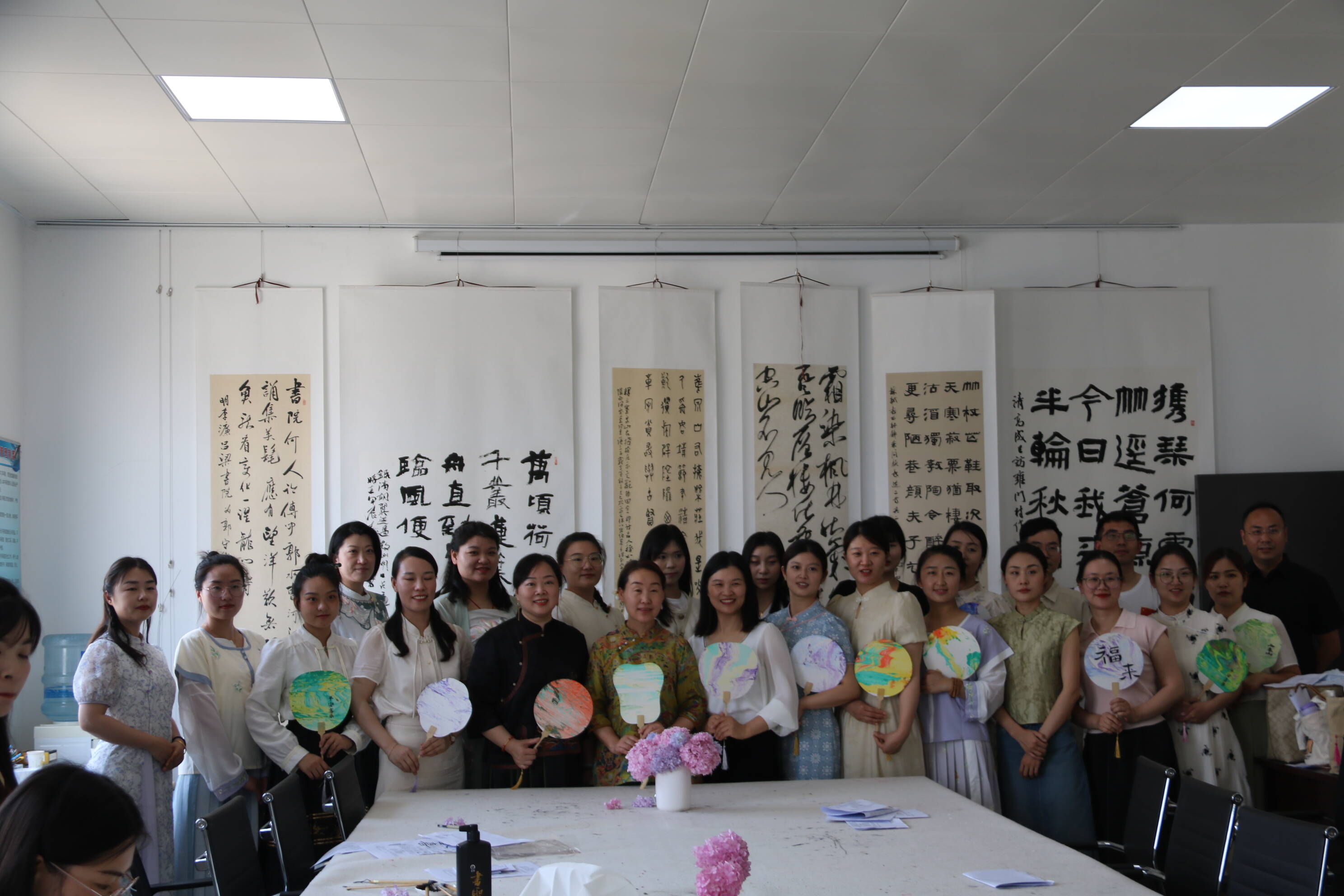 以漆为纸,以扇为画,漆扇,作为中国传统手工艺品之一,承载着深厚的历史文化底蕴。教师们亲自动手制作漆扇、题字,传扬传统文化,给活动画上圆满的句号。