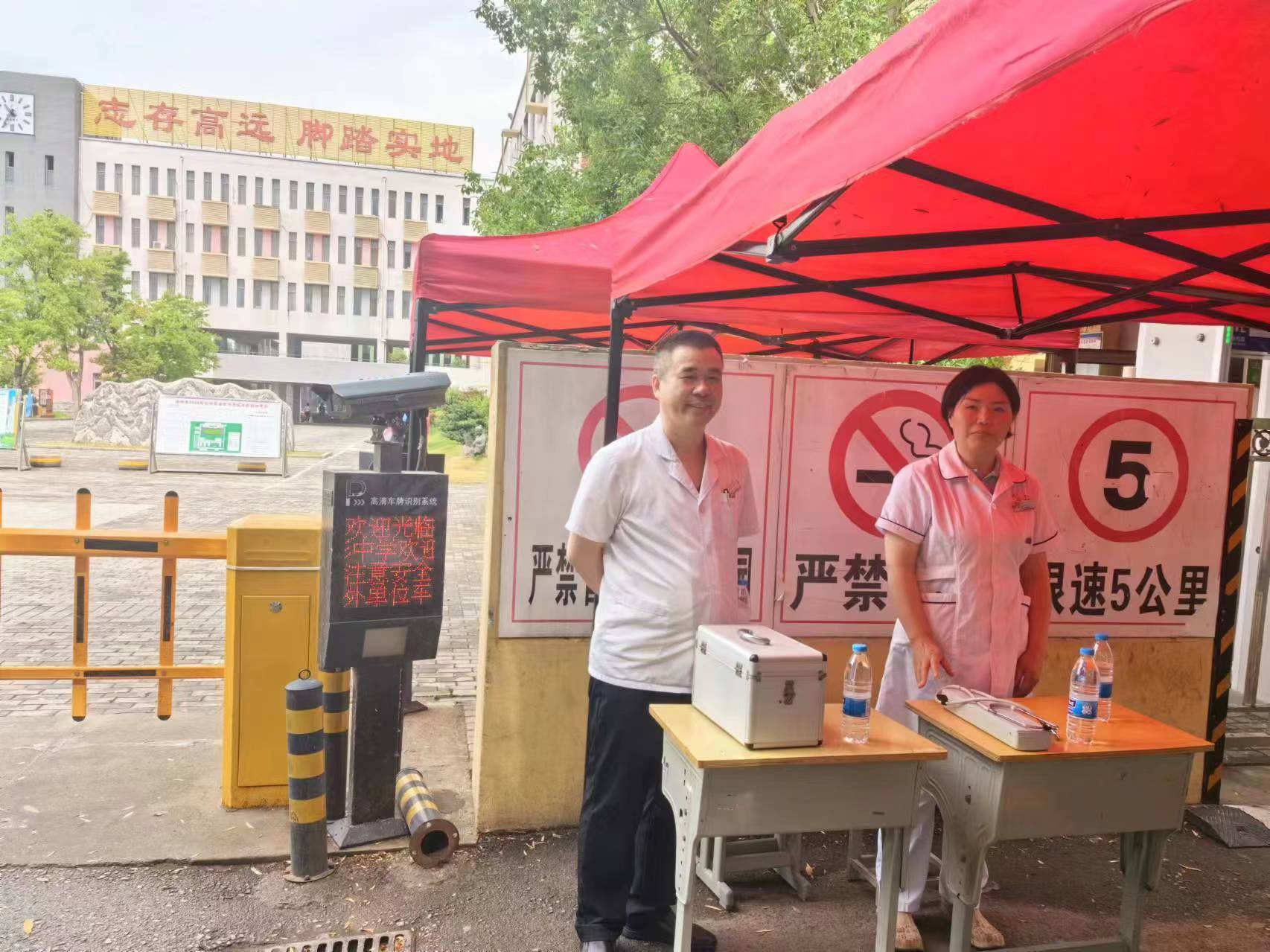中考期间,医疗保障组提前进驻考点,医务人员准备充分,救治药品充足,做好了包括中暑、腹泻、低血糖、肠痉挛等突发情况的治疗准备,发现情况及时处理,提供及时、高效、安全、优质的医疗服务。同时该院在中考期间也处于应急状态,设置考生急救“绿色通道”,如遇突发情况,考生能第一时间在医院内优先诊治,全方位保障了考生顺利考试。