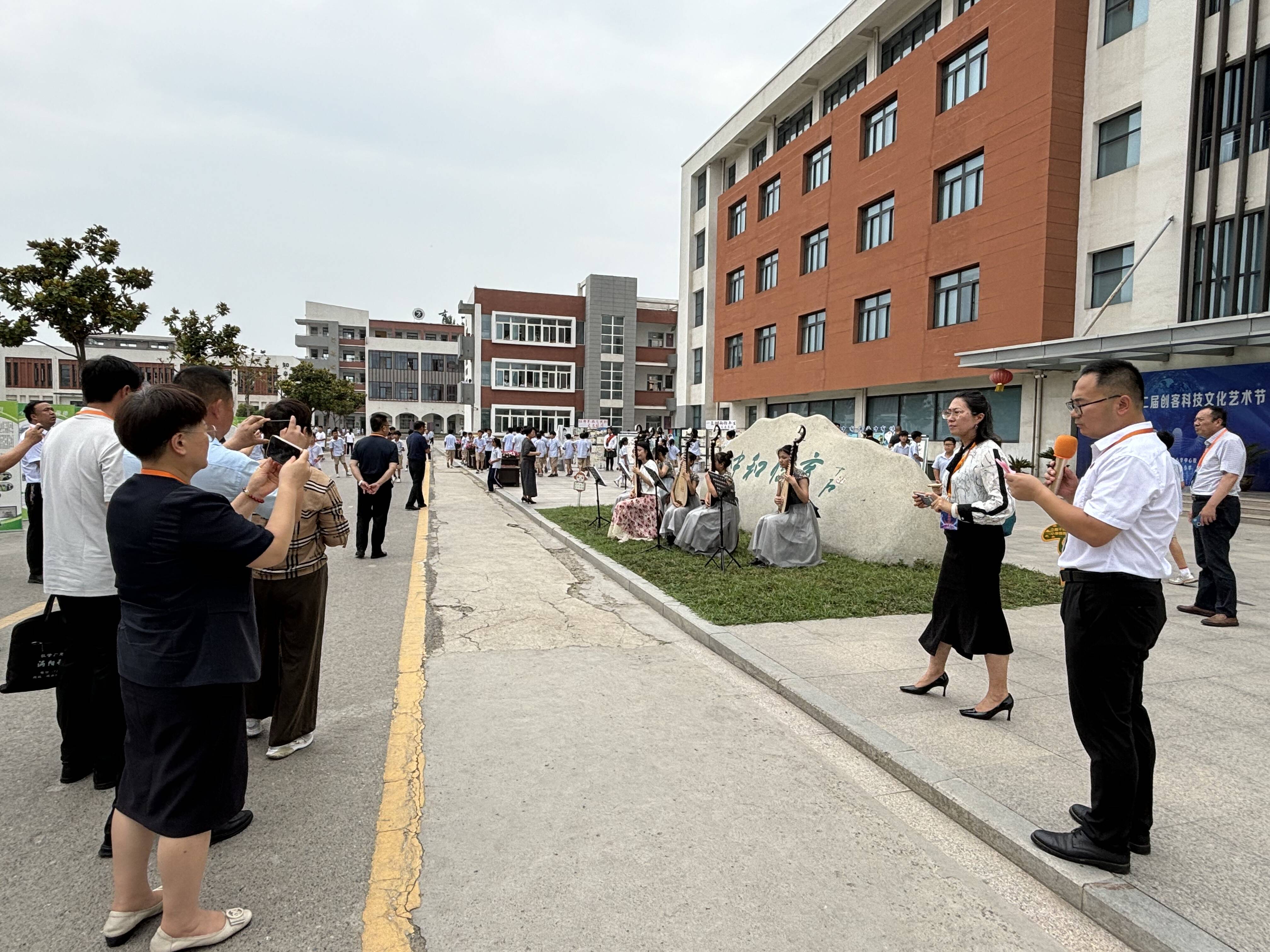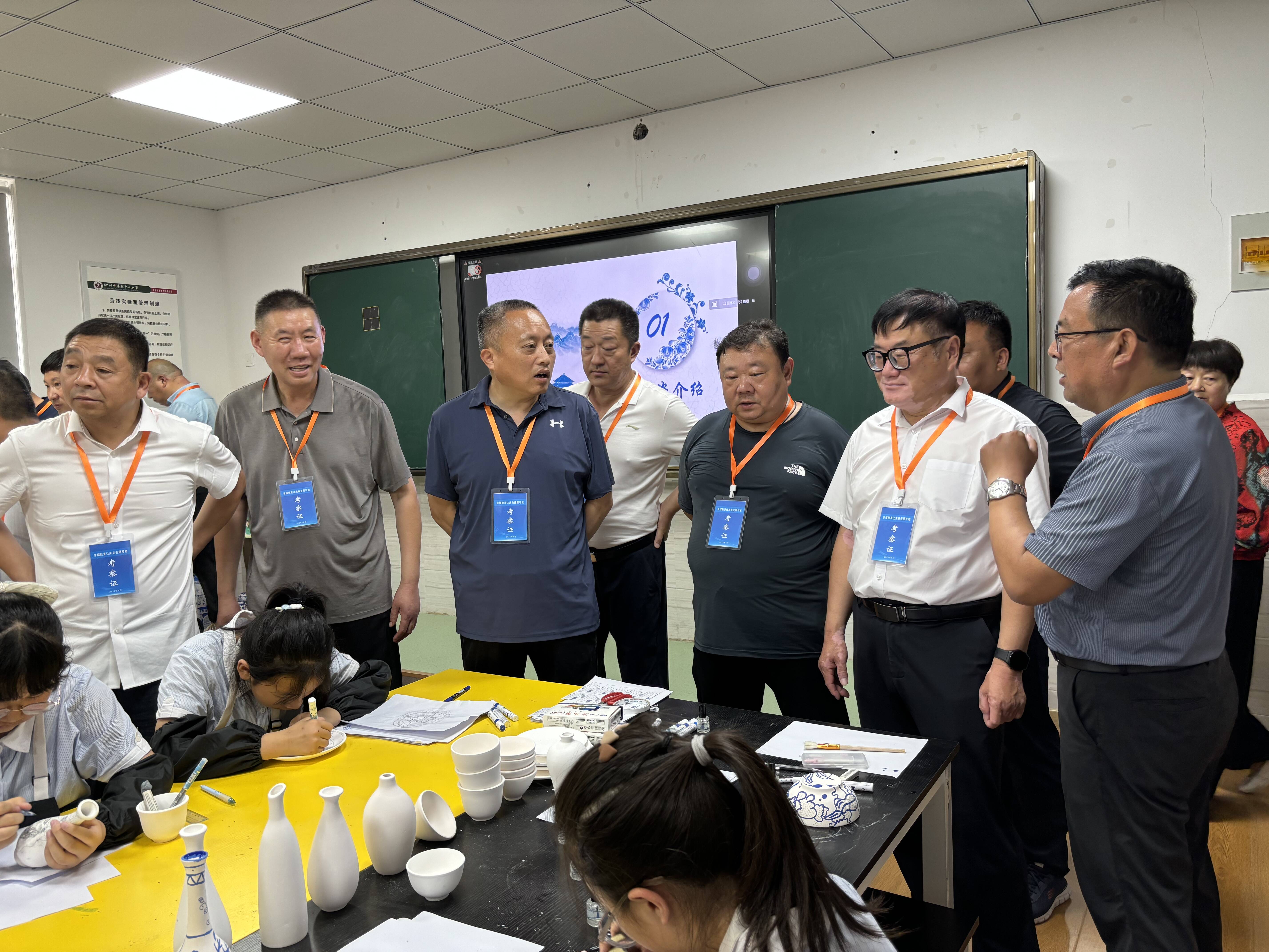 综合楼前的作品展区犹如一场艺术盛宴引围观,学生佳作璀璨绽放。在展览现场,考察团的老师们纷纷驻足欣赏并表达对作品的喜爱和赞赏,他们认真观赏每一幅作品,不时发出赞叹声。