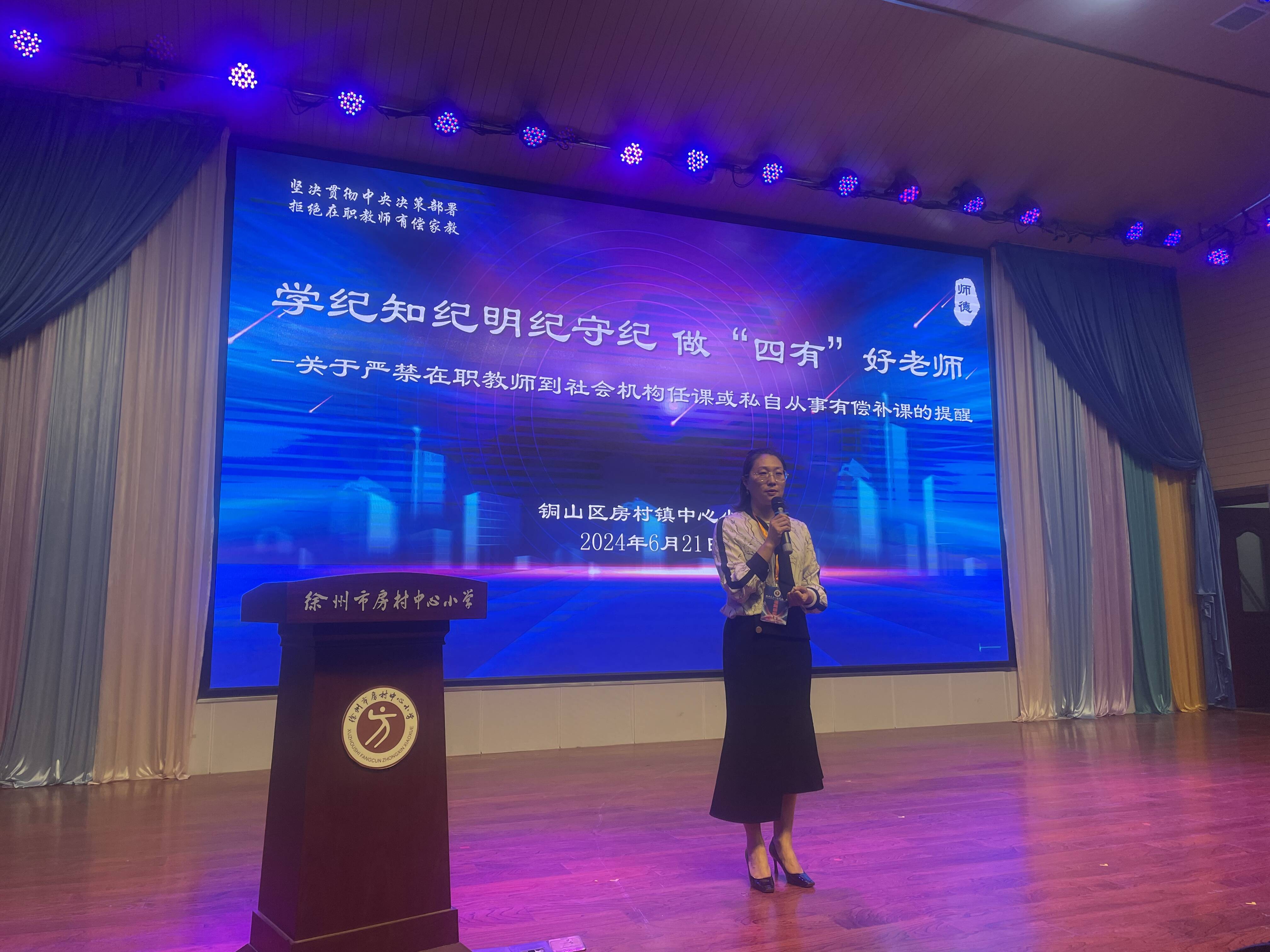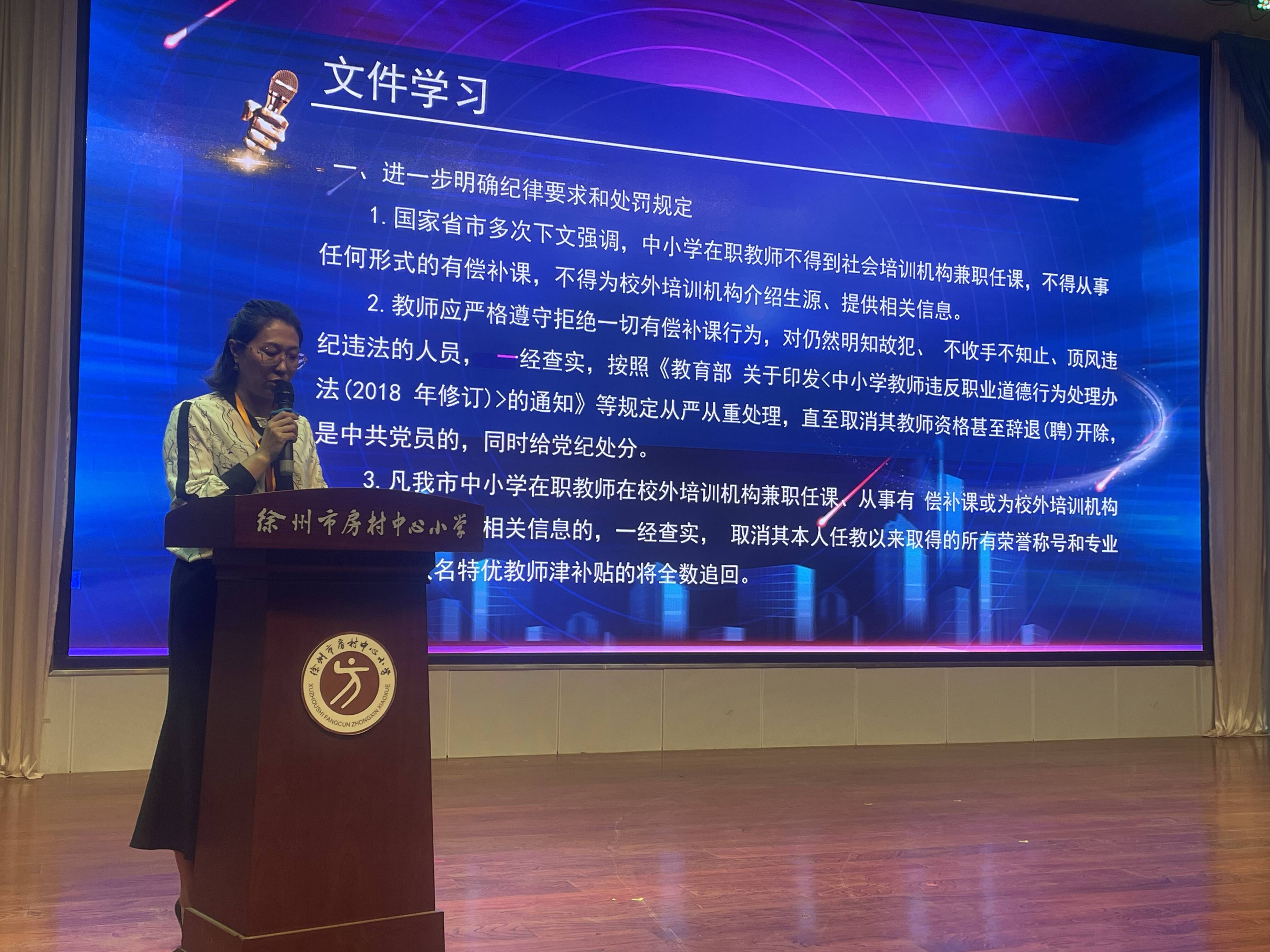 近日,房村镇中心小学组织全校教师开展了一次“严禁在职教师到社会机构任课或私自从事有偿补课”的培训学习活动。德育处郝会校长主持会议,旨在进一步强化教师师德师风建设,树立教育行业的良好形象。