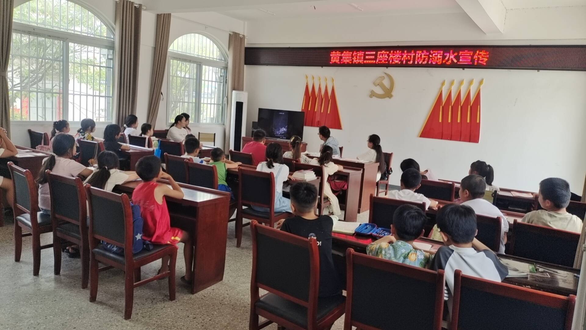 黄集镇“爱心暑托班”秉承就近就便原则,将办班地点设立在三座楼村新时代文明实践站,以此为点位向周边村辐射,有图书室1个,可供学生学习的会议室1个,户外健身娱乐场所1个,为孩子提供了一个安全、安静、舒适的学习环境。