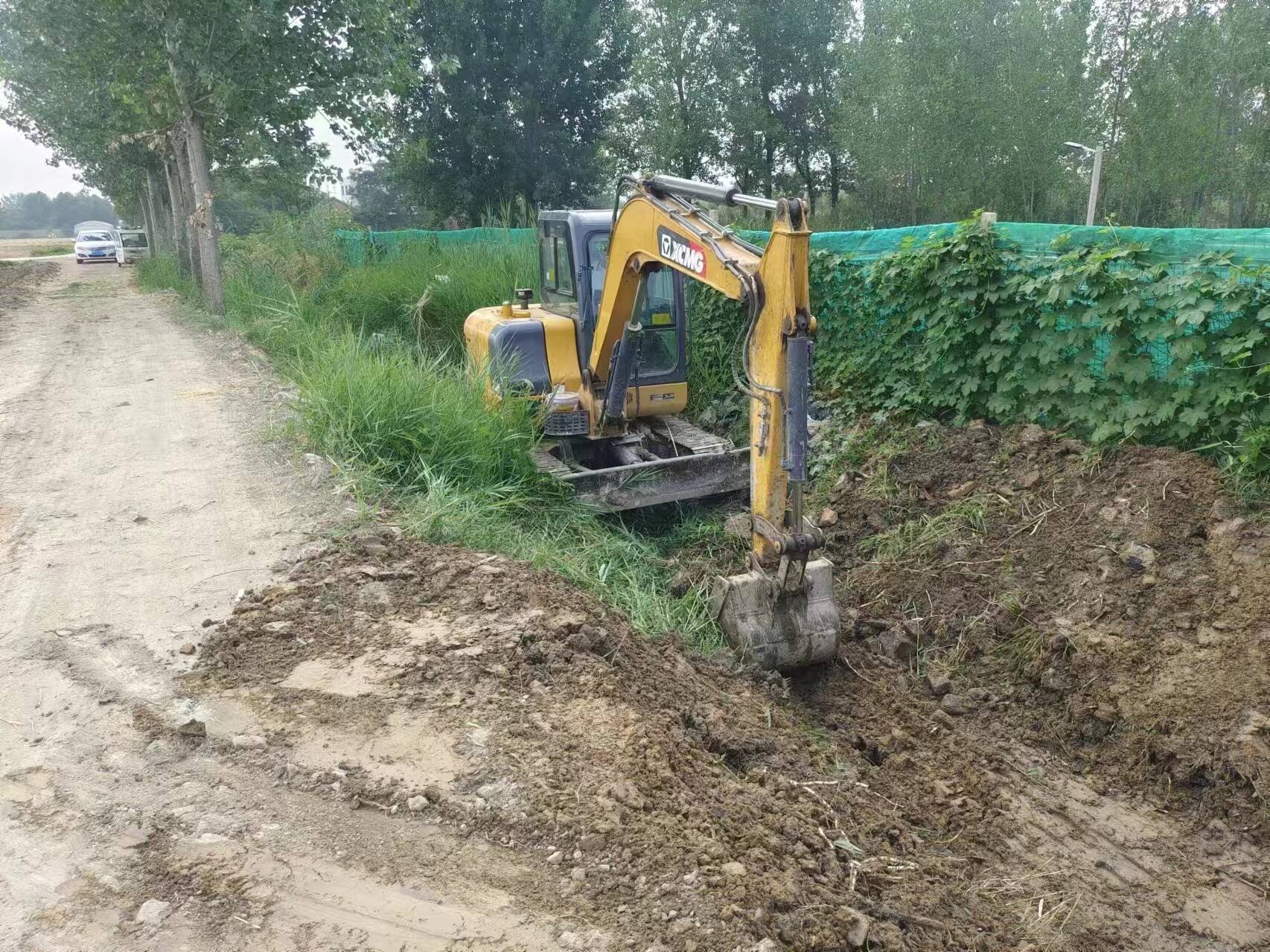 (对农田沟进行杂草清理)
