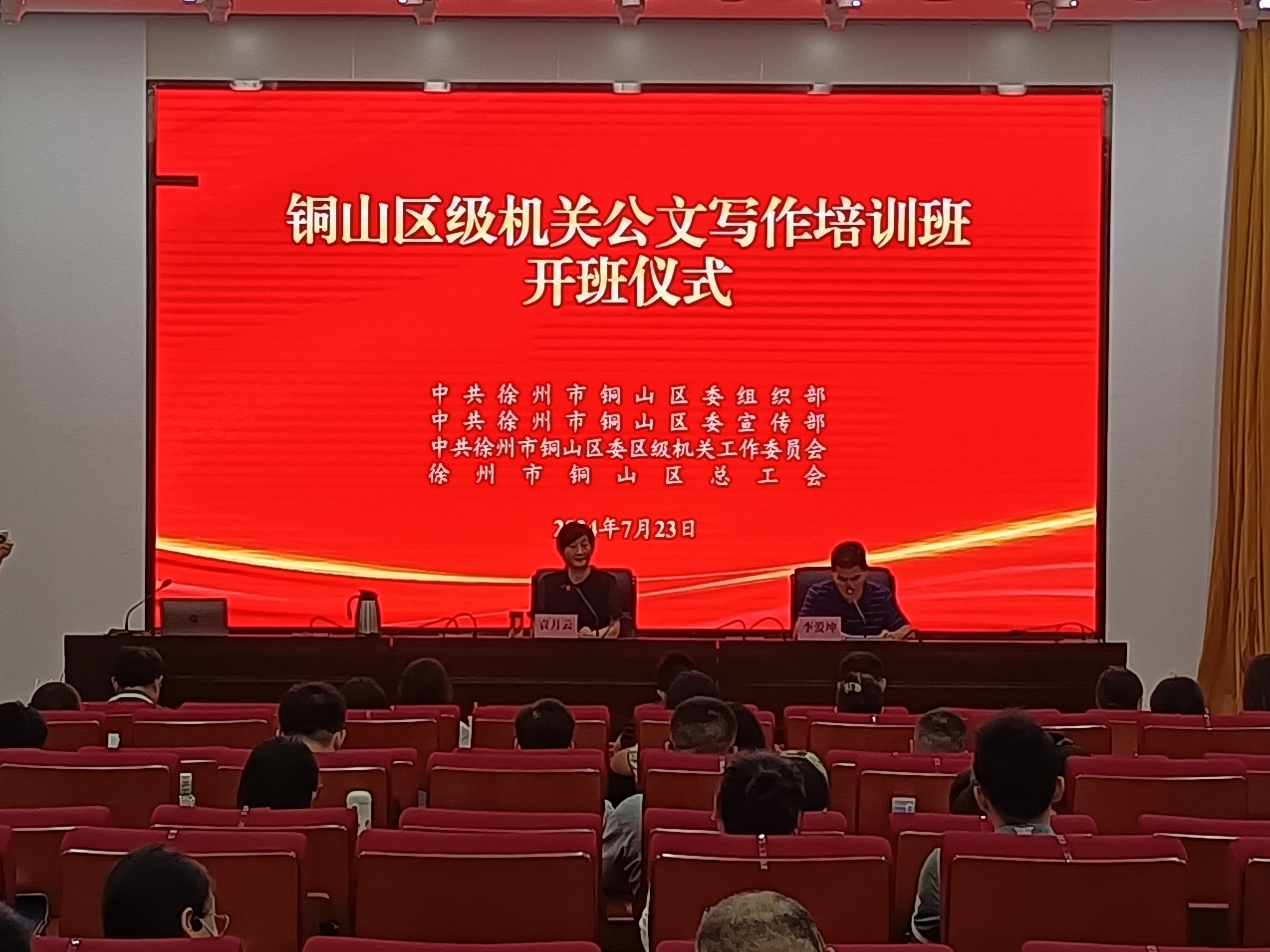 7月23日,铜山区级机关公文写作培训班于铜山区委党校报告厅正式拉开帷幕。此次培训由区委组织部、区委宣传部、区委区级机关工委、区总工会联合举办。旨在全方位提高铜山区级机关工作人员的公文写作水平,大力增强公文处理能力,进一步提升铜山区机关工作的规范化和专业化程度。