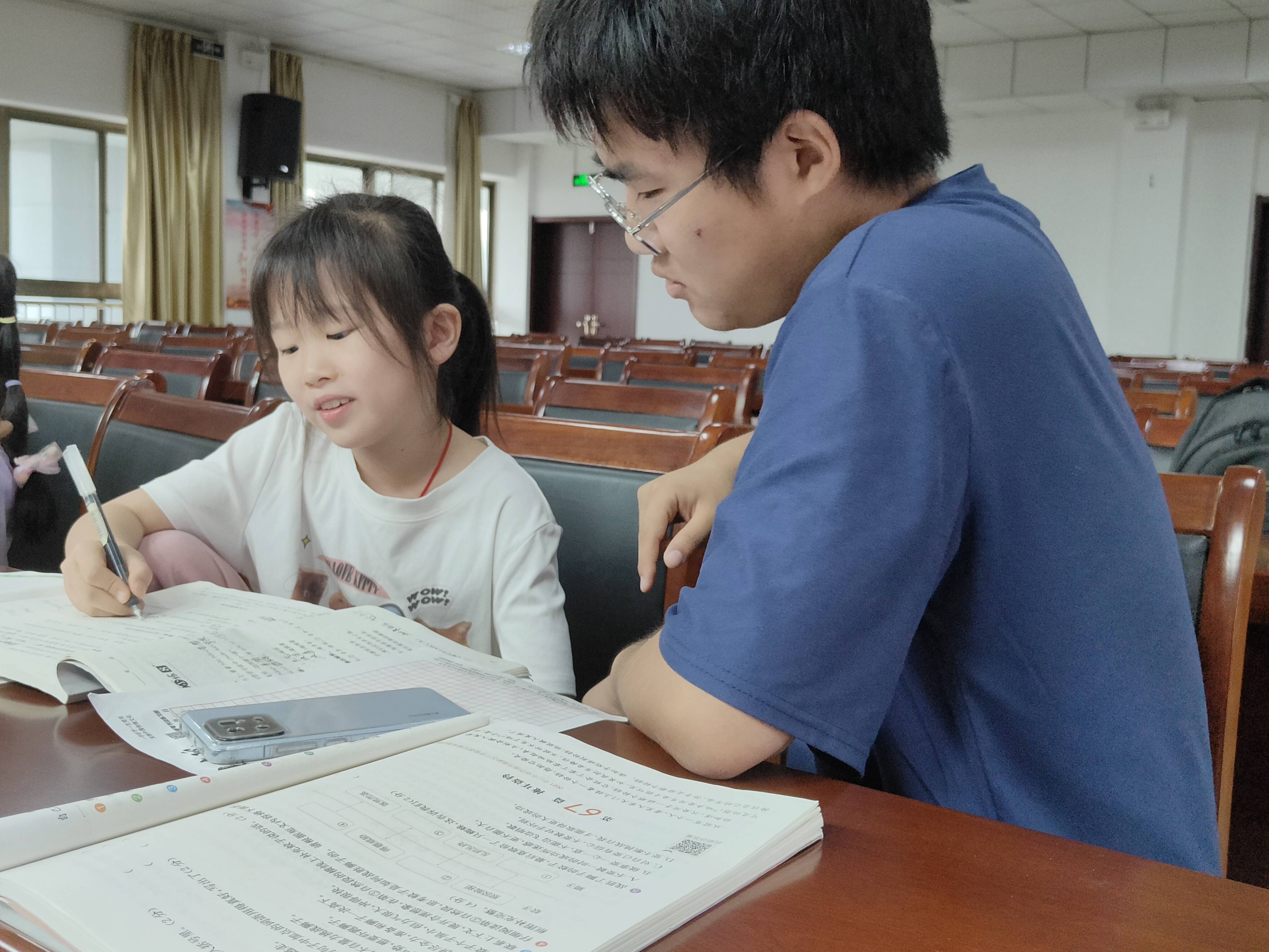在文化课上,为孩子辅导作业,解决作业难题;给孩子展示中国矿业大学风采,鼓励孩子们好好学习;进行爱国教育宣讲,爱国爱党深刻孩子心中。在手工课上,志愿者教孩子们制作非遗漆画手工扇,带领孩子们制作水彩书包,进行泥塑讲解与制作。在兴趣课堂,为孩子们讲解垃圾分类的知识,带领孩子领略机电魅力,举办读书分享会,培养孩子们阅读兴趣。在课间活动,带领孩子们玩老鹰捉小鸡、击鼓传花......一场场丰富多彩的活动,拉近了志愿者与孩子们的距离,大手拉小手,“童”享欢乐假期。