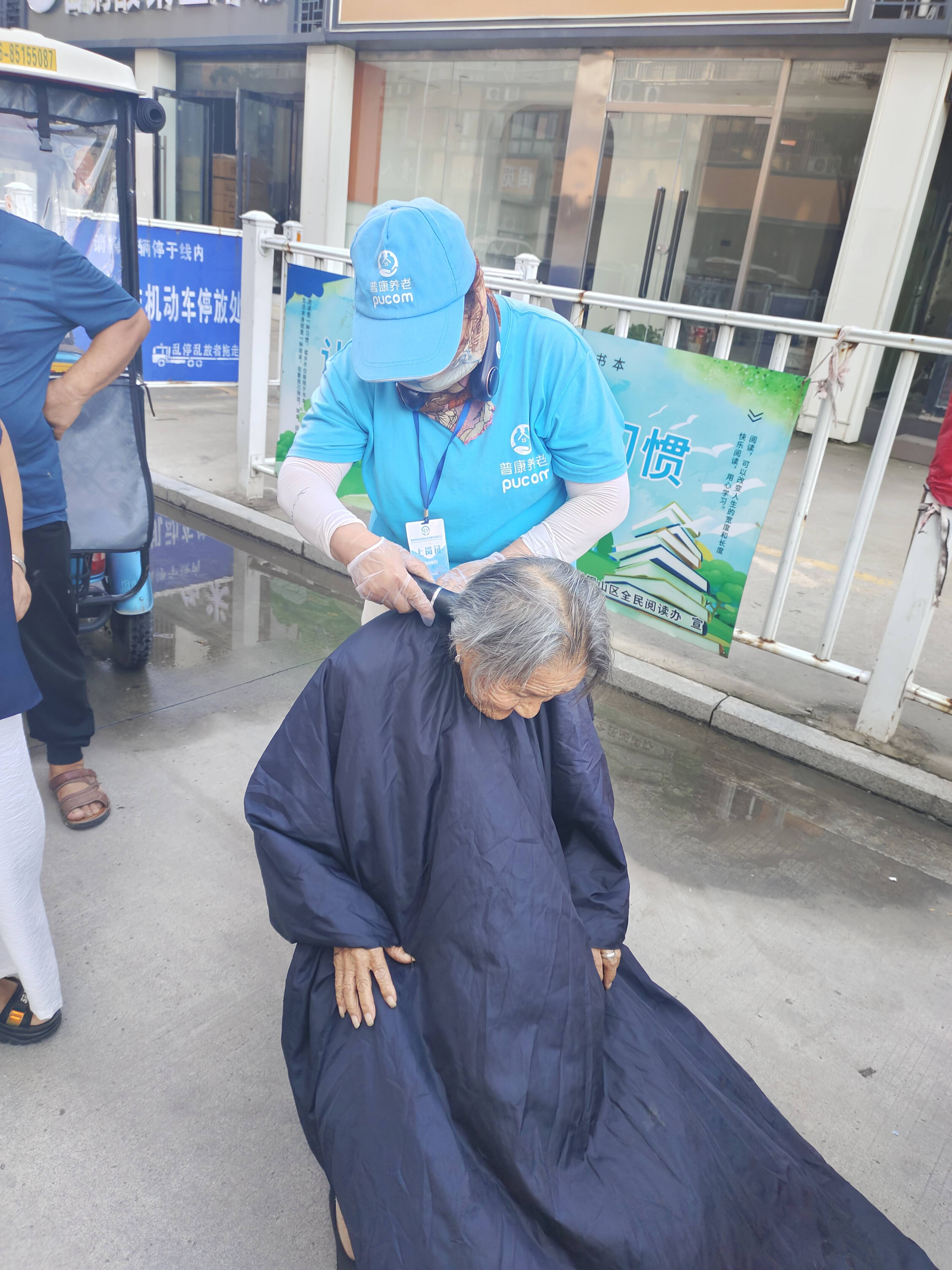 旁边的理发服务也在如荼如火地进行中,护理人员耐心地与老人沟通他们的理想发型并给老人普及长护险政策,当场就有老人竖起大拇指,直夸护理人员服务好、手艺好。工作人员还向村民们发放宣传折页,就长护险的保障范围、待遇水平、申请条件、申请流程、上门照护的服务项目等信息,热心、耐心、详细进行答疑解惑。活动当场发放彩页300多份,接受群众咨询70余次。