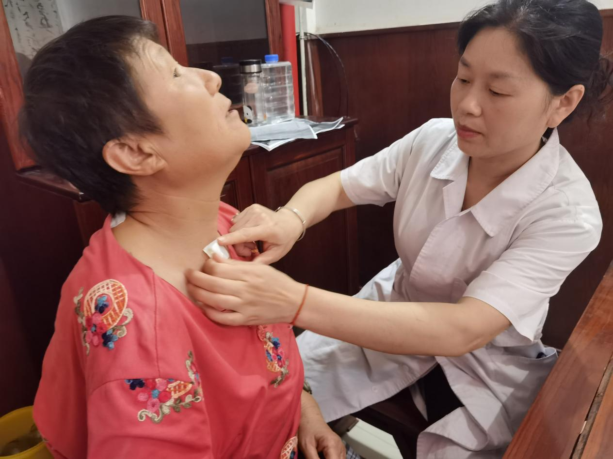 活动现场,中医科医生耐心细致地为大家开展诊脉,辨证,选穴,并根据不同的体质及症状,采用不同的药方贴敷,同时耐心讲解三伏贴适应症、禁忌症及贴敷后的注意事项。他们手法娴熟,态度温和,让居民们感受到中医药独特魅力,也享受到贴心的医疗服务。广大居民表示,不仅学到了中医药健康知识,还亲身体验到了“三伏贴”的神奇疗效,感觉身体更加舒服了。