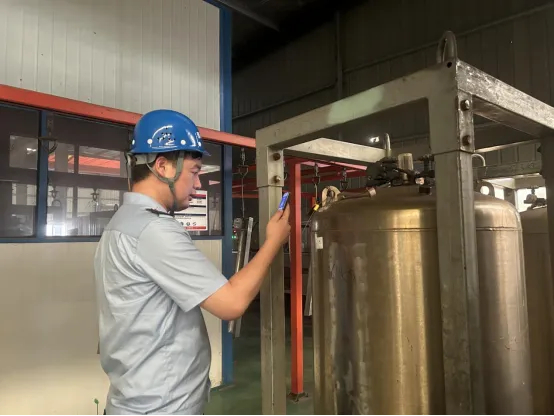 同时,工作人员嘱咐企业主要负责人:“当前正值高温天气,一定要做好员工的防暑降温工作,车间内要存放一定的防暑降温物资,如藿香正气水、雪糕、冰水等,守护好员工们的身体健康。”