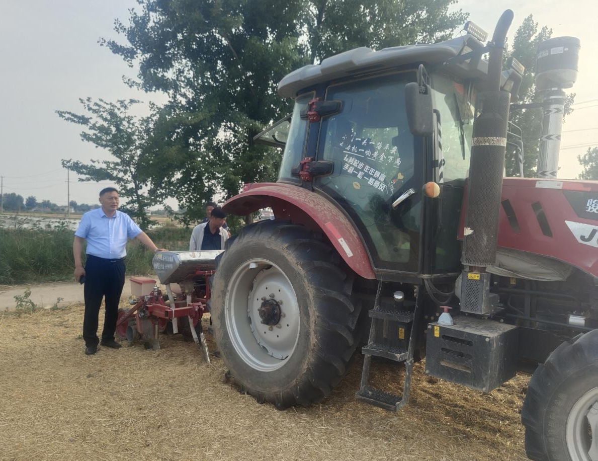 张集村党支部书记刘传新深入田间地头,查看农作物复合种植情况。张集村依托村八二八土地流转专业合作社、家庭农场和种植大户等新型农业经营主体,高质量完成2400亩大豆玉米带状复合种植工作,带动农户人均增收800元以上,成功将大豆玉米带状复合种植与村集体经济发展、农民增收相融合,实现粮食稳产增产。