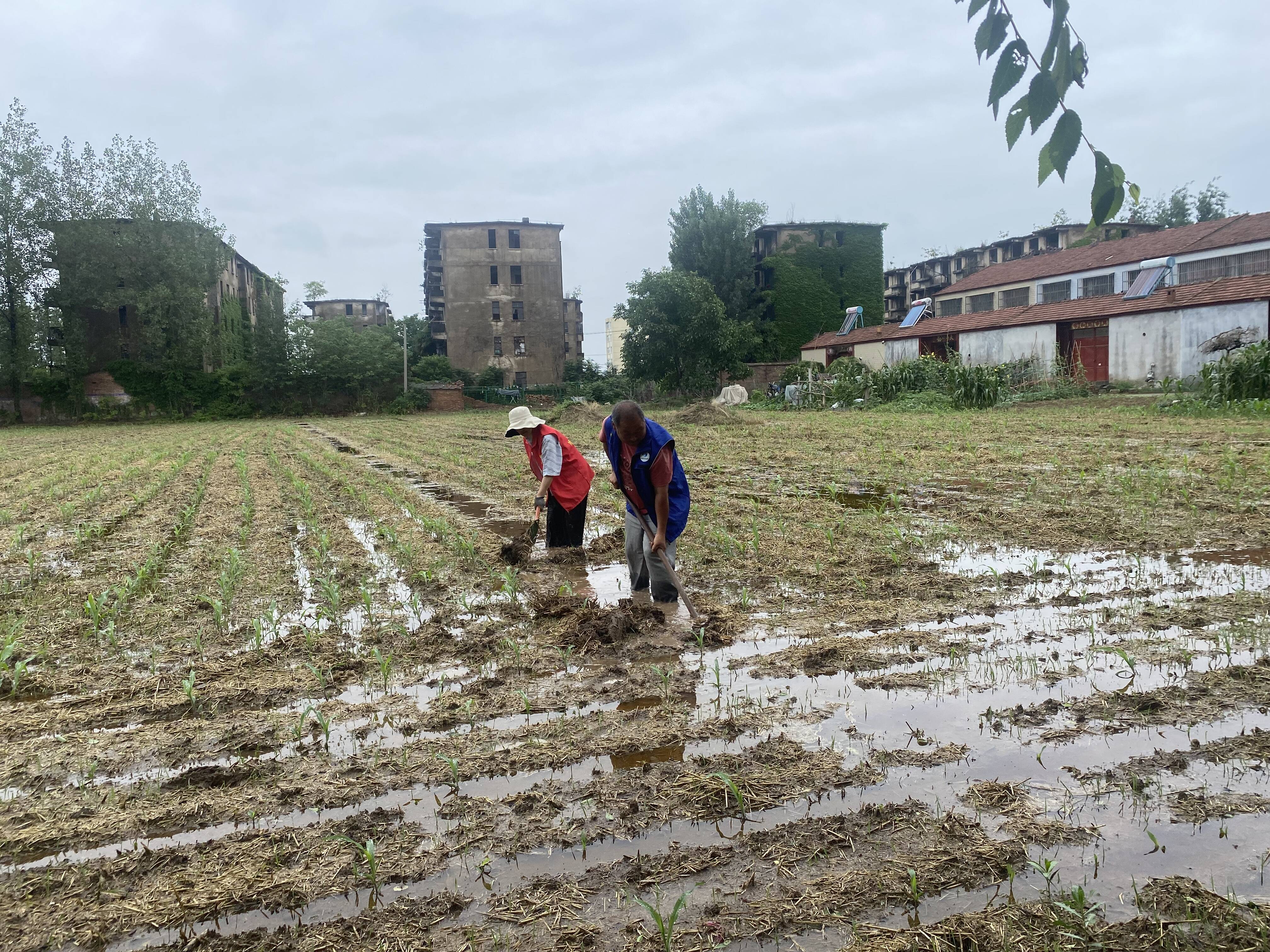前一段时间连日阴雨,部分旱田大量积水,危害旱地作物,其中村民谷女士的15亩玉米田地积水情况最为严重。刚长出一拃来长的玉米苗全部淹没。丈夫务工不在家,自己一人之力难以应付,一时间农田排水困难让谷女士苦不堪言,生怕玉米遭了殃,连租金都支付不上。